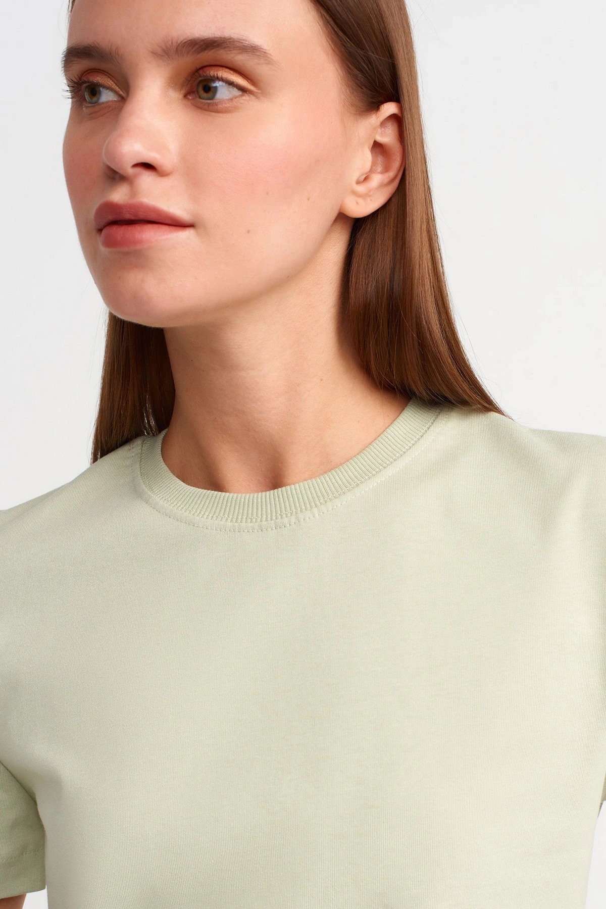BİSİKLET YAKA DOKUMA PENYE PAMUK TİŞÖRT – MİNT YEŞİLİ