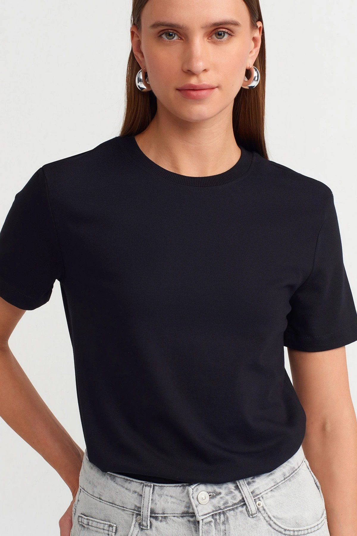 BİSİKLET YAKA DOKUMA PENYE PAMUK TİŞÖRT – SİYAH