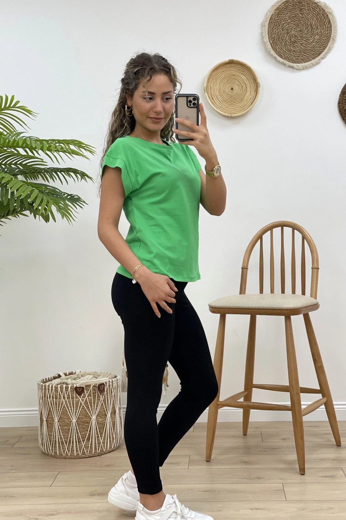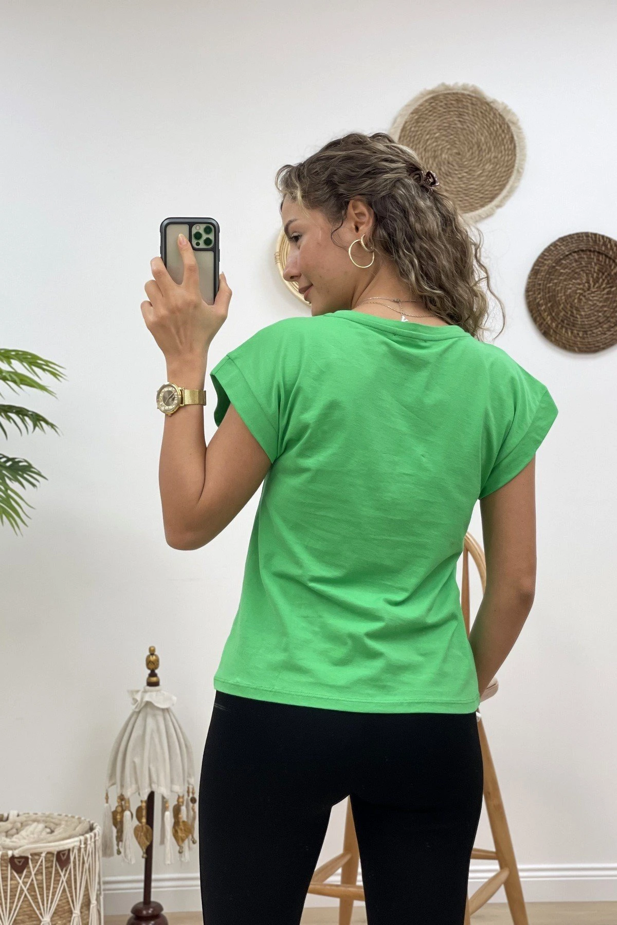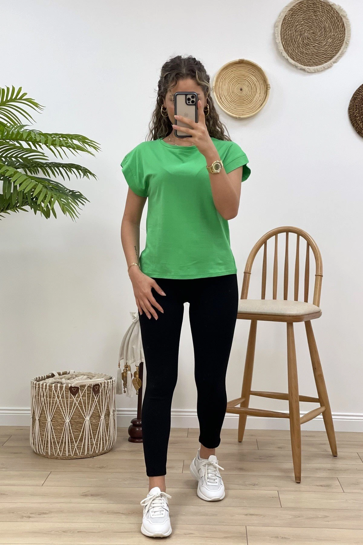 BİSİKLET YAKA DÜŞÜK KOL TİŞÖRT – AÇIK YEŞİL