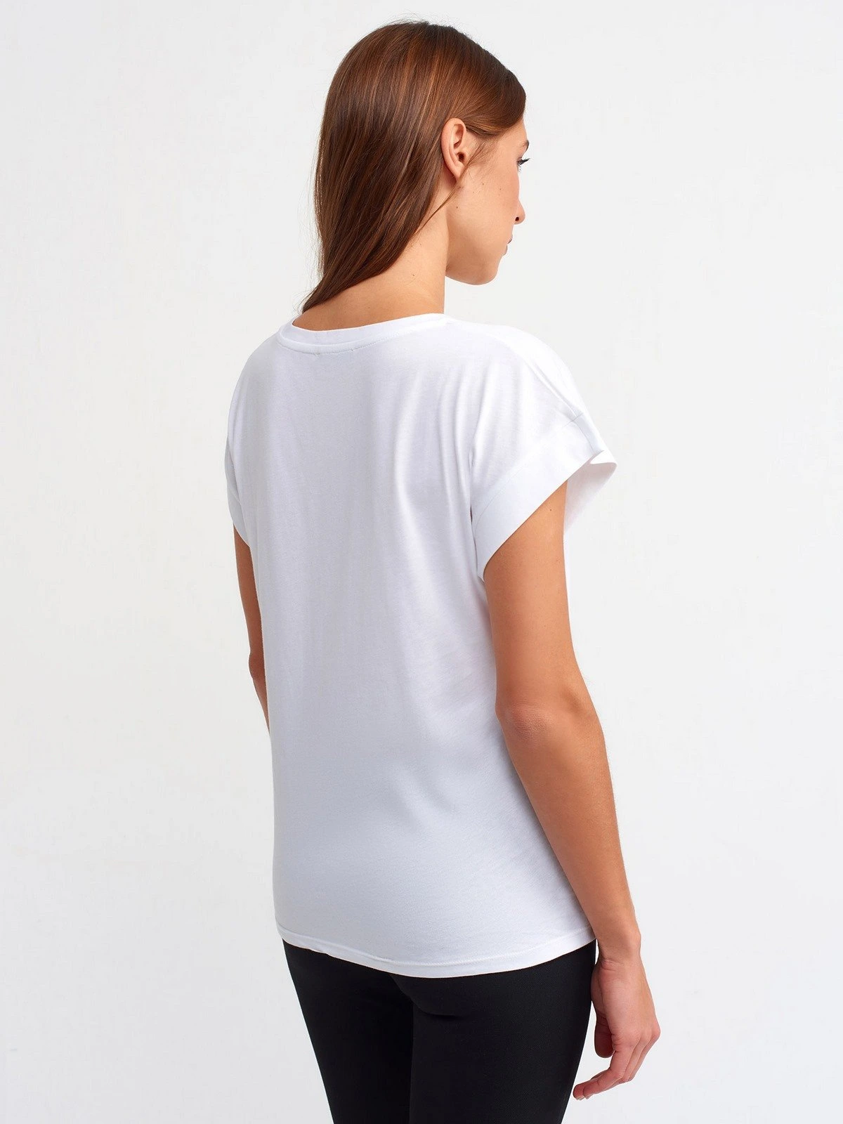 BİSİKLET YAKA DÜŞÜK KOL TİŞÖRT – BEYAZ