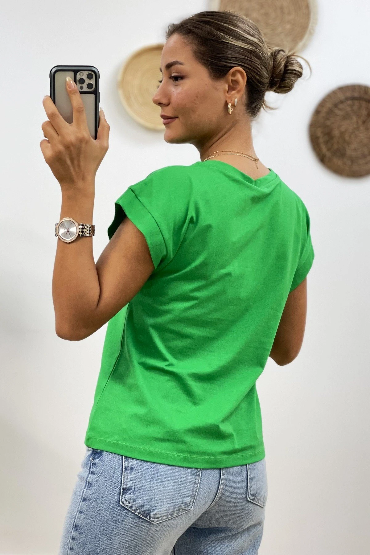 BİSİKLET YAKA DÜŞÜK KOL TİŞÖRT – KOYU YEŞİL