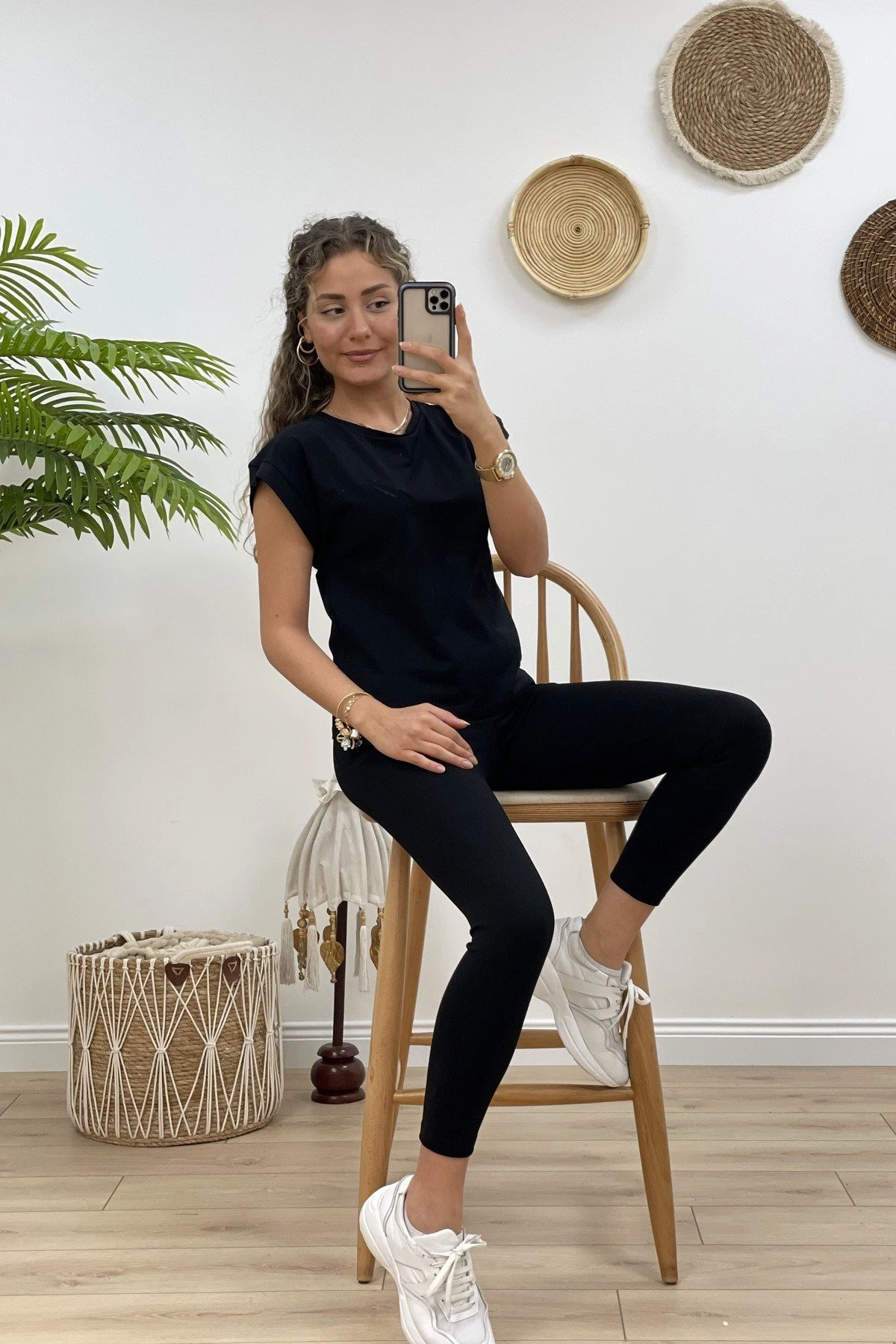 BİSİKLET YAKA DÜŞÜK KOL TİŞÖRT – SİYAH
