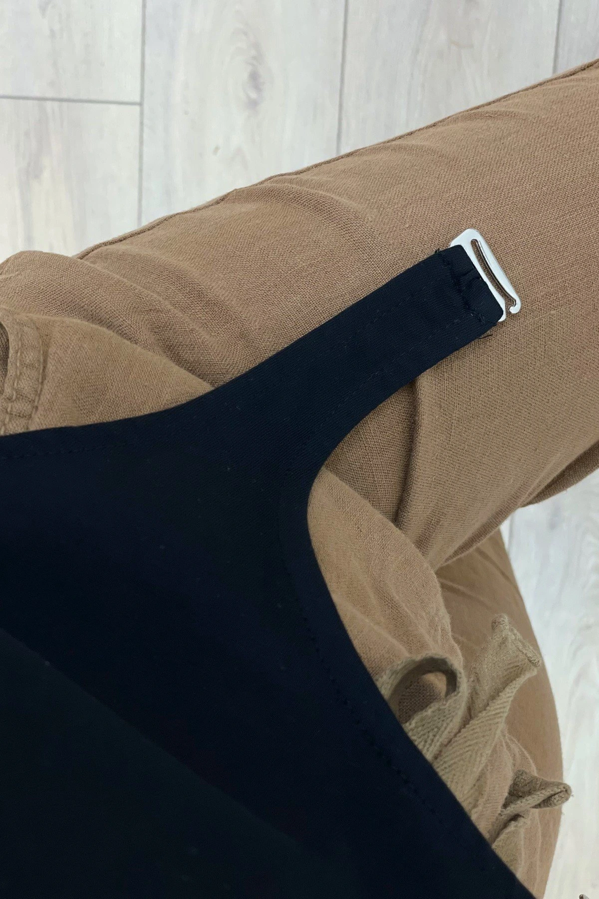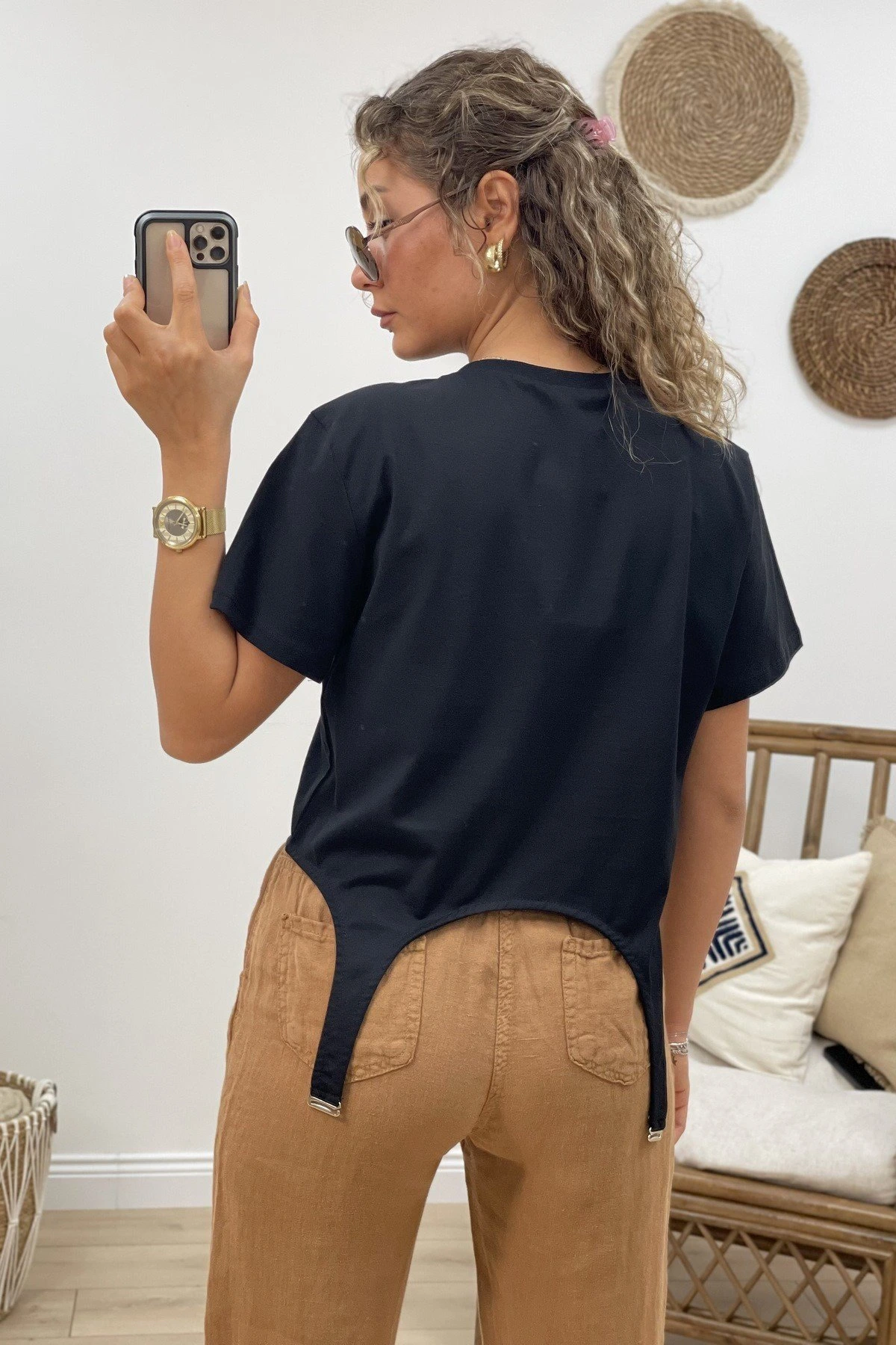 BİSİKLET YAKA ETEĞİ GEÇMELİ TİŞÖRT – SİYAH