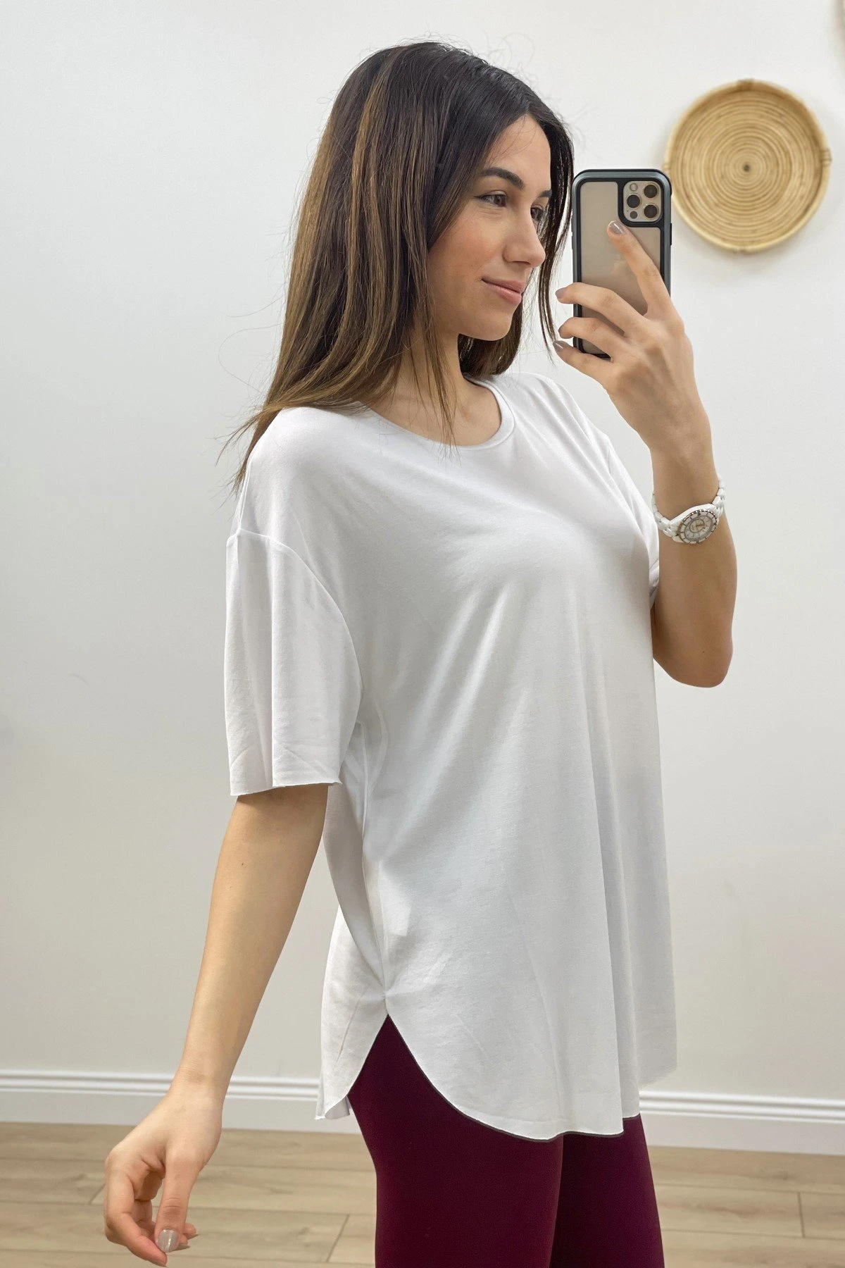 BİSİKLET YAKA ETEĞİ VEREV LAZER KESİM TİŞÖRT – BEYAZ