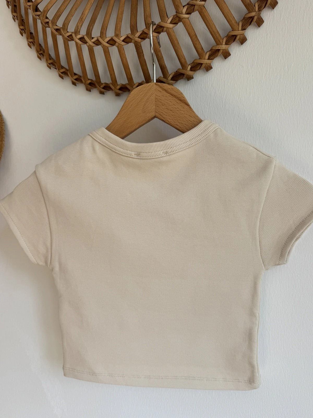 BİSİKLET YAKA FİTİLLİ LİKRALI CROP TİŞÖRT – TAŞ
