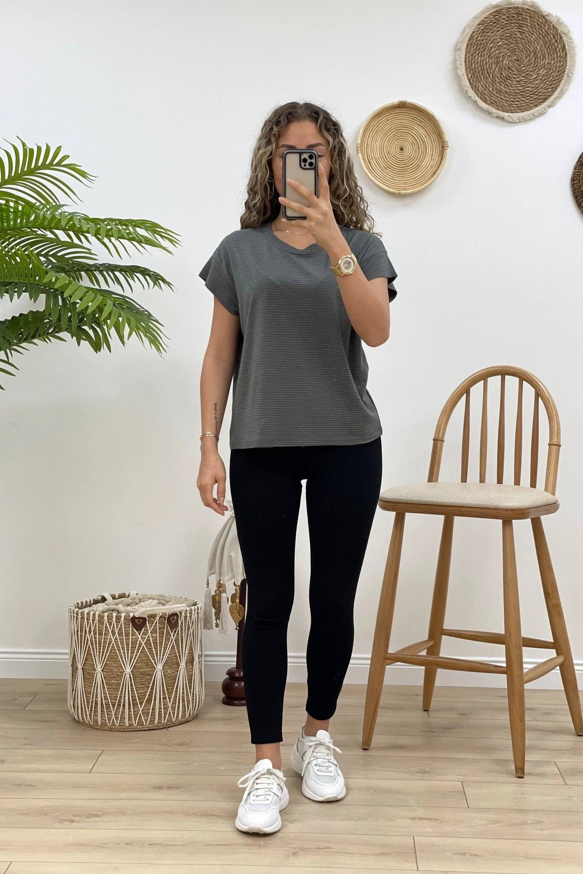 BİSİKLET YAKA JAPONE KOL ÇİZGİLİ TİŞÖRT – ANTRASİT