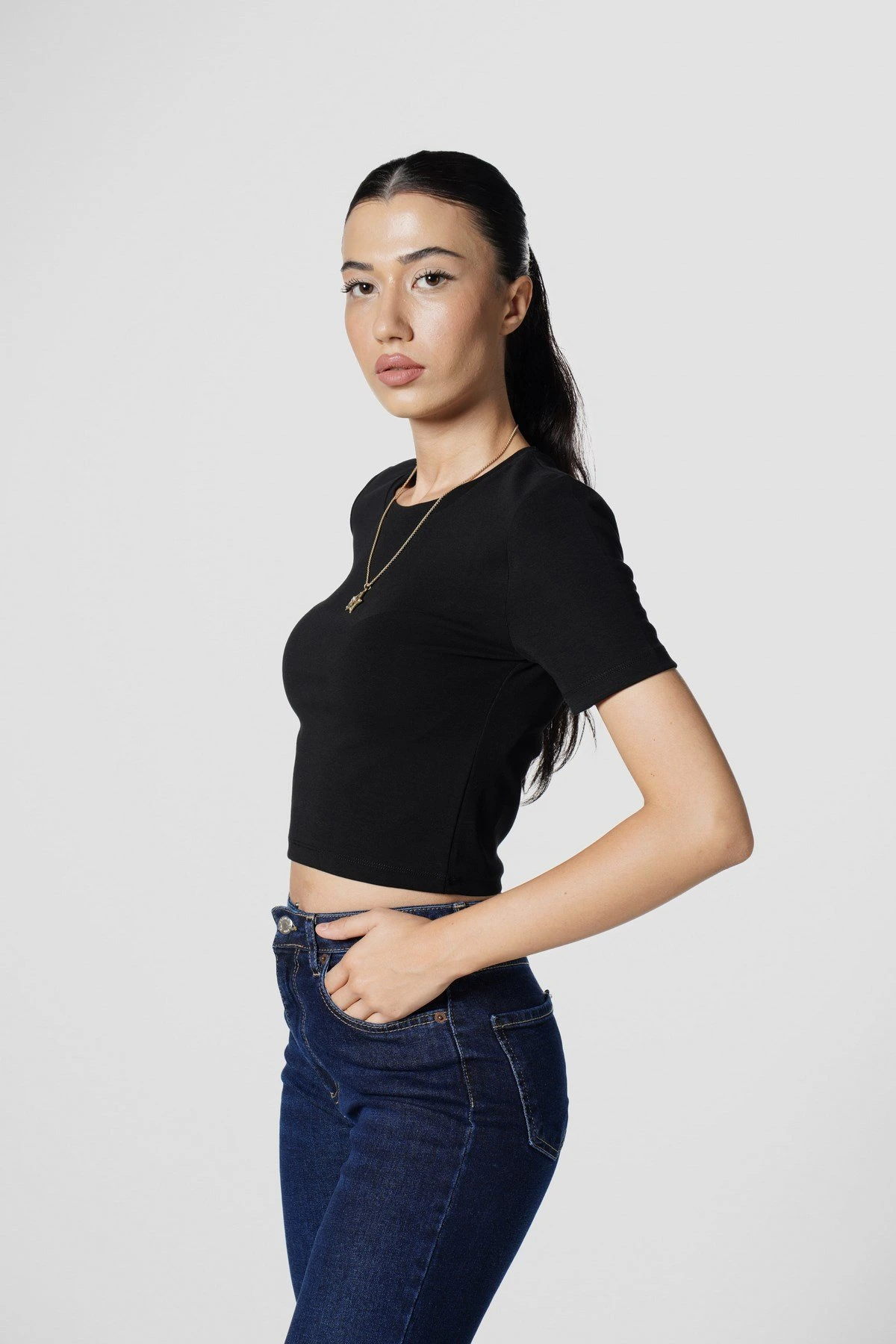 BİSİKLET YAKA LİKRALI CROP – SİYAH