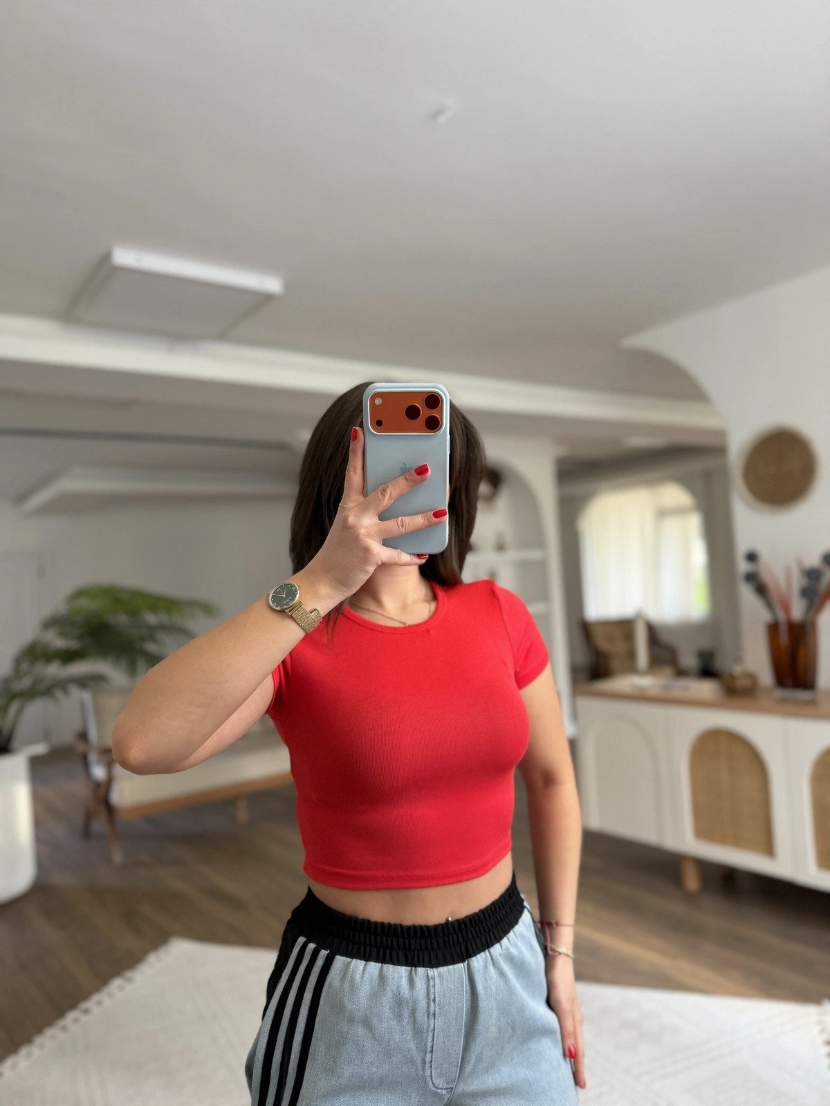 BİSİKLET YAKA MODAL CROP – KIRMIZI
