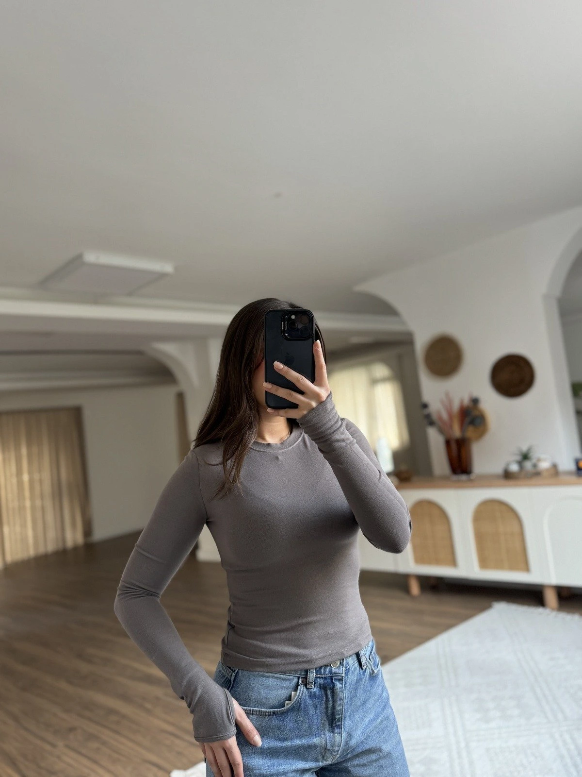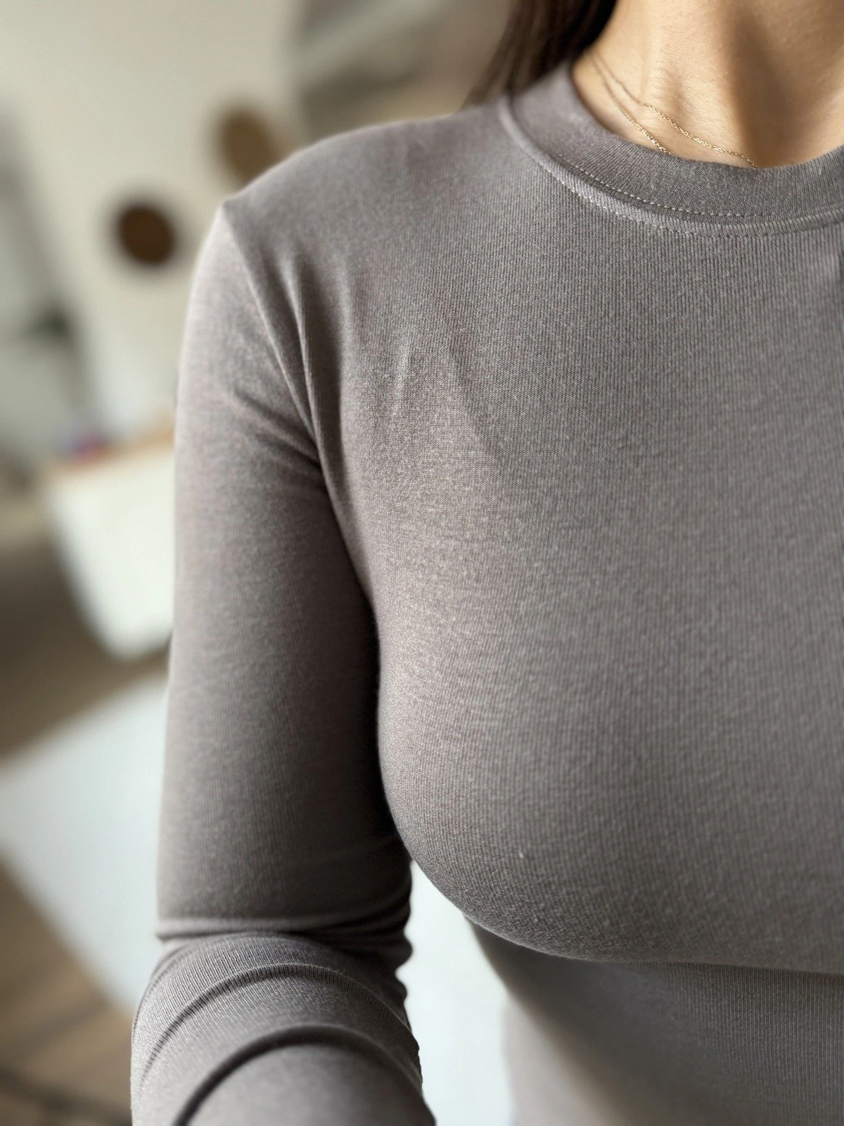 BİSİKLET YAKA PARMAK GEÇMELİ VİSKON TİŞÖRT – KOYU VİZON