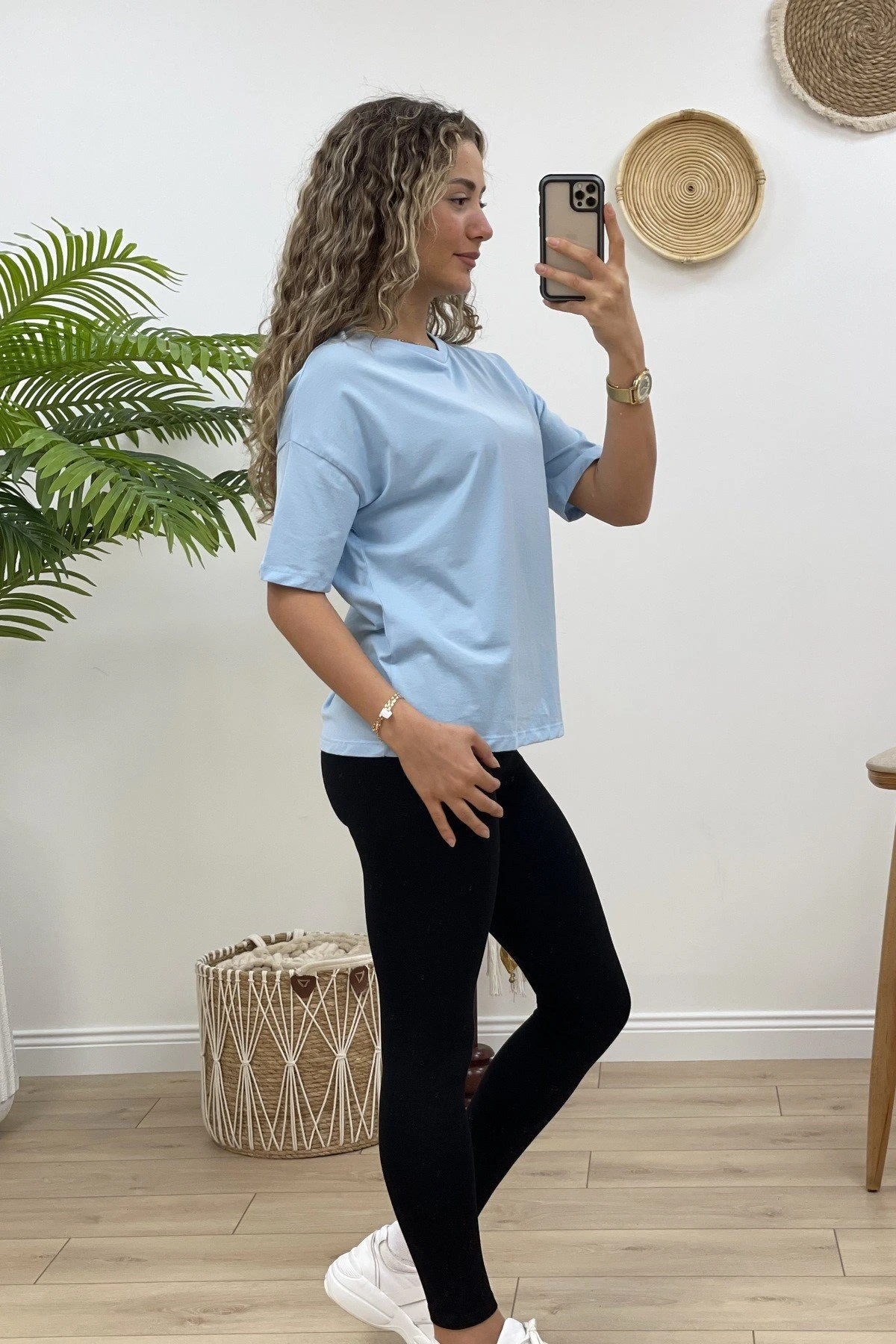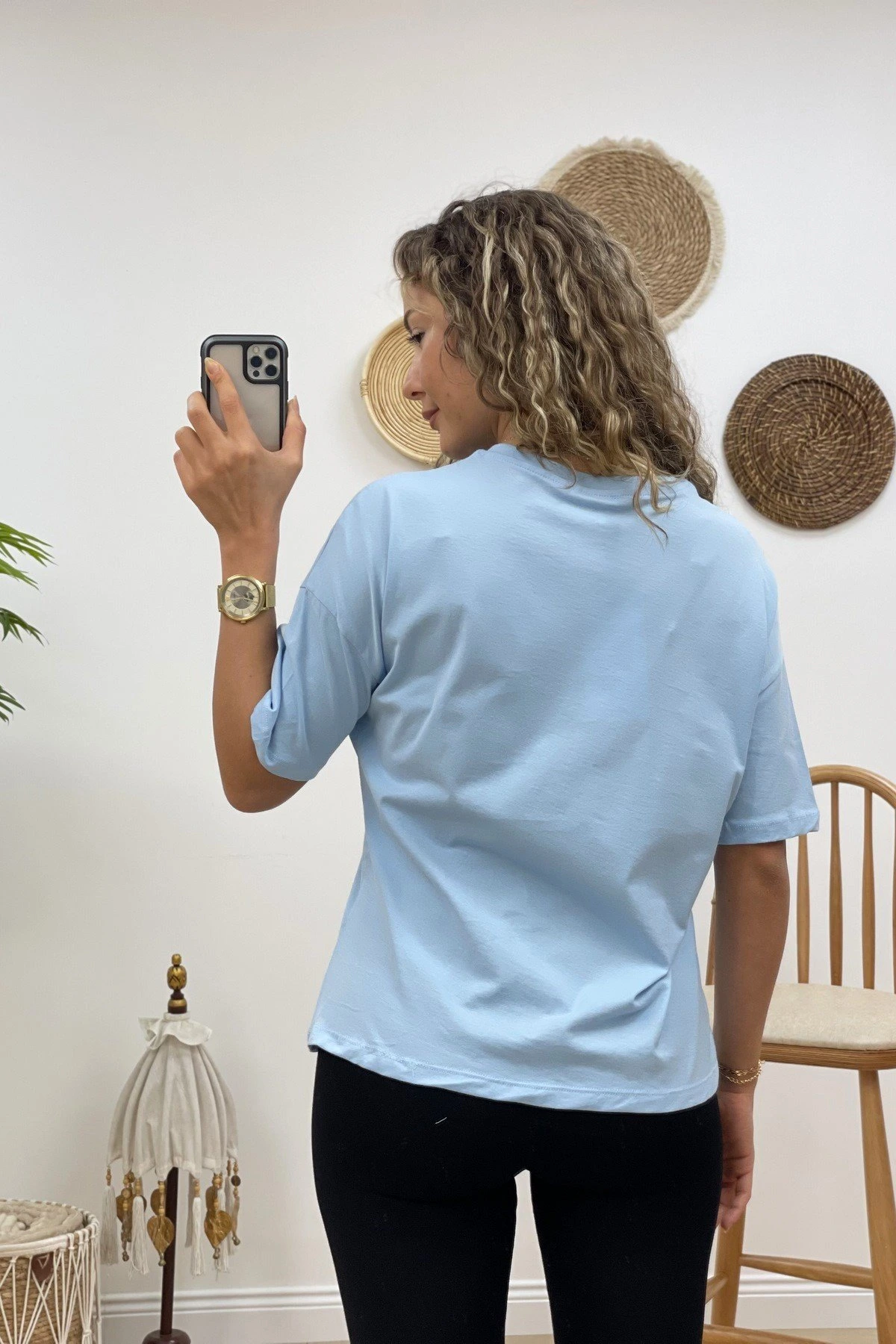BİSİKLET YAKA SALAŞ TİŞÖRT – BEBE MAVİ