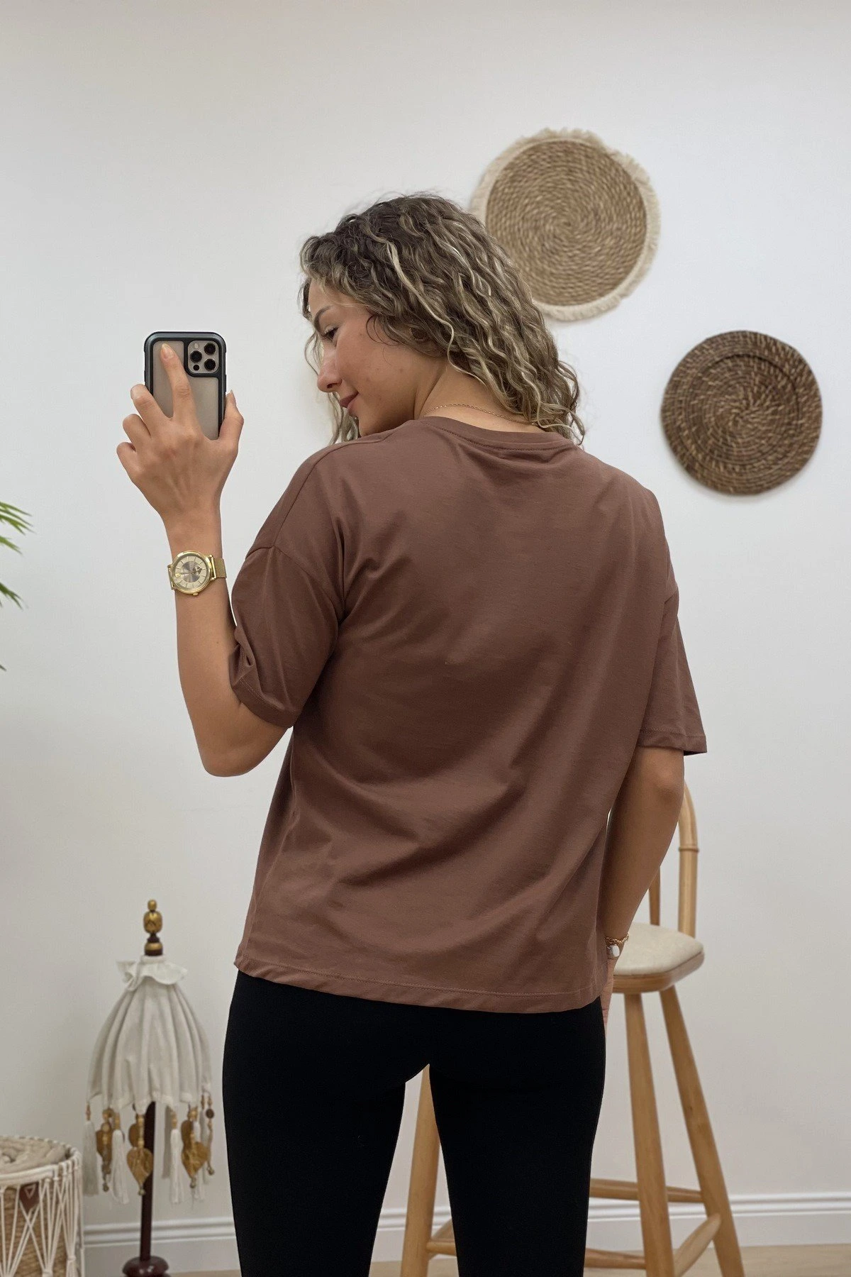 BİSİKLET YAKA SALAŞ TİŞÖRT – KAHVE