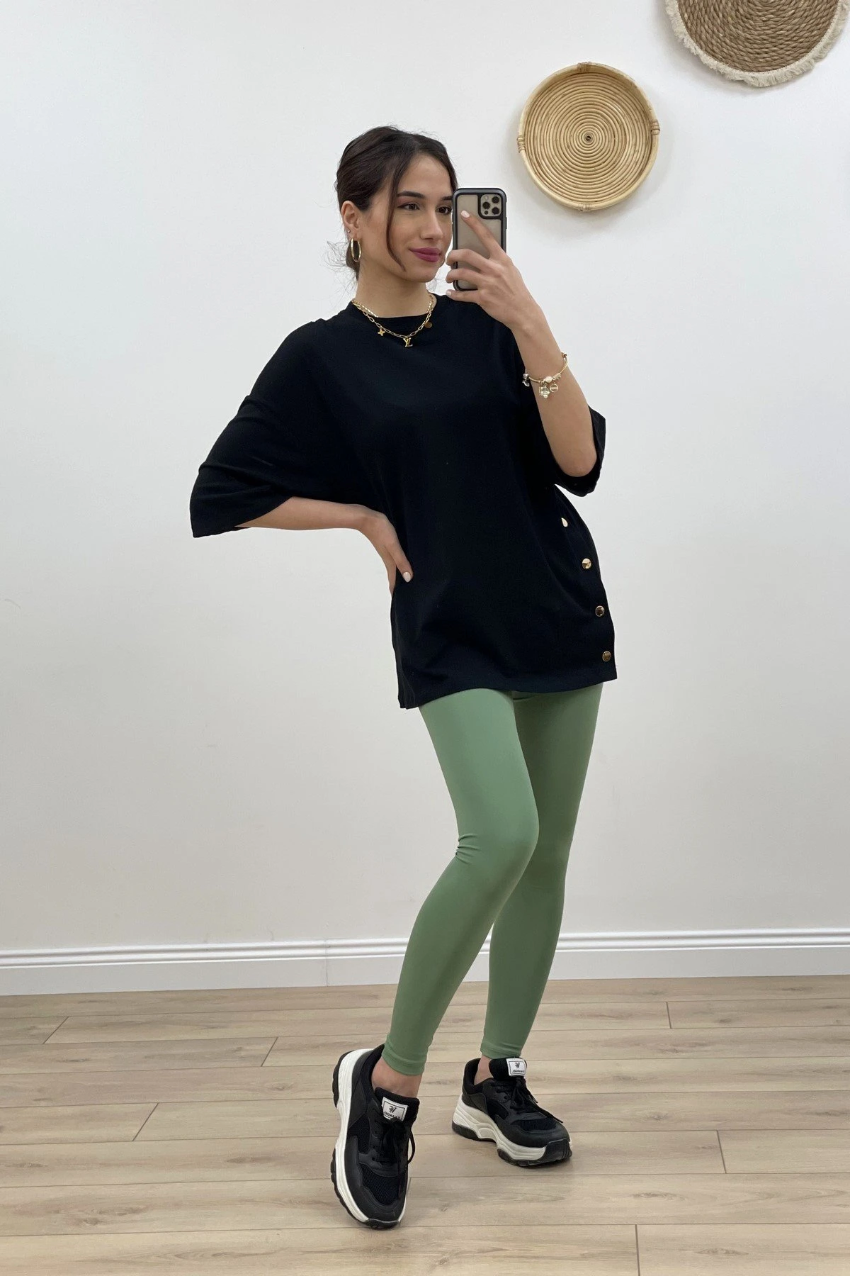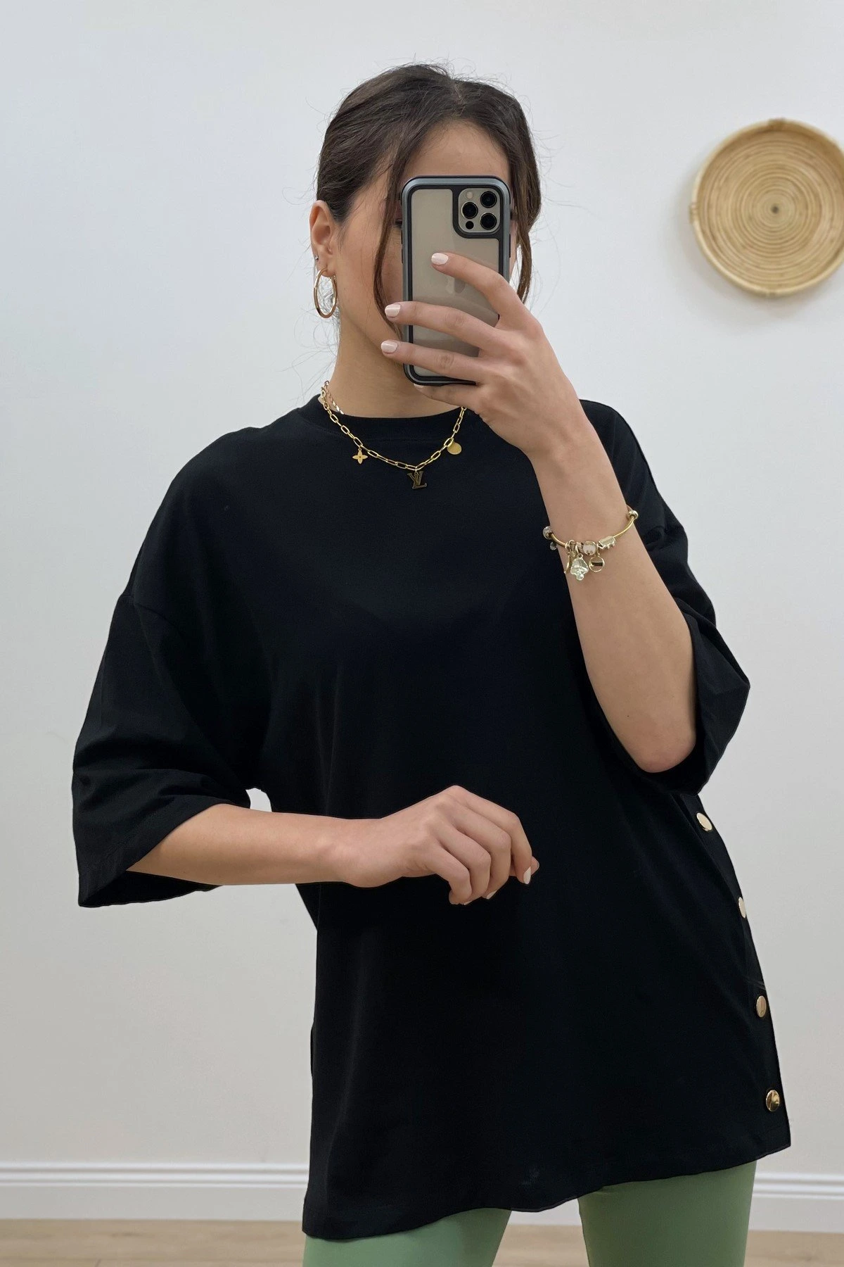 BİSİKLET YAKA TEK YAN DÜĞMELİ TİŞÖRT – SİYAH