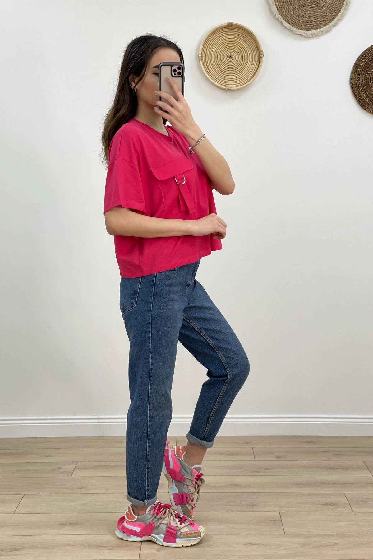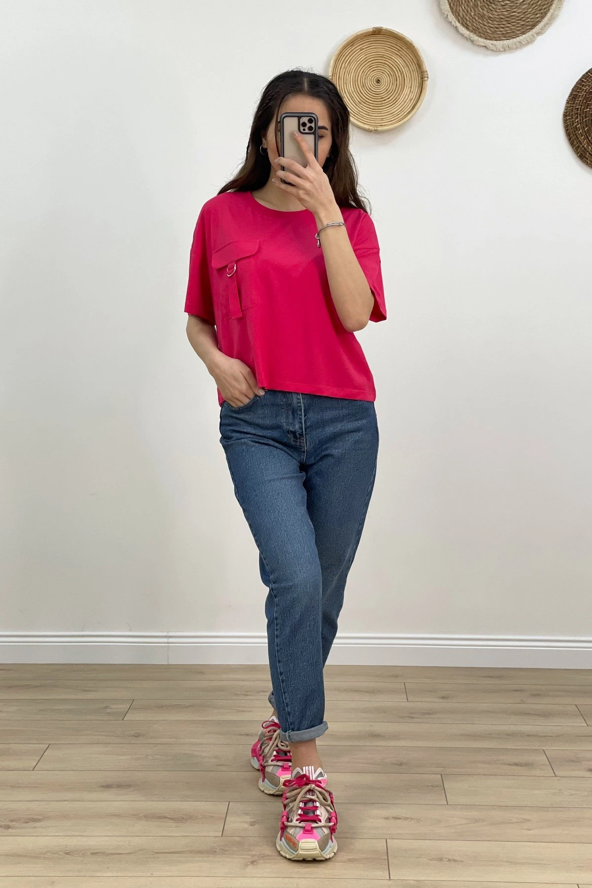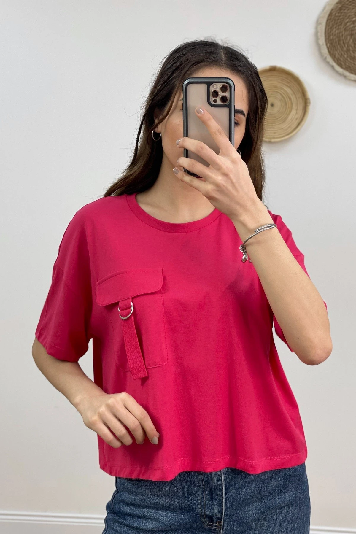 CEP DETAY SALAŞ PAMUK TİŞÖRT – FUŞYA