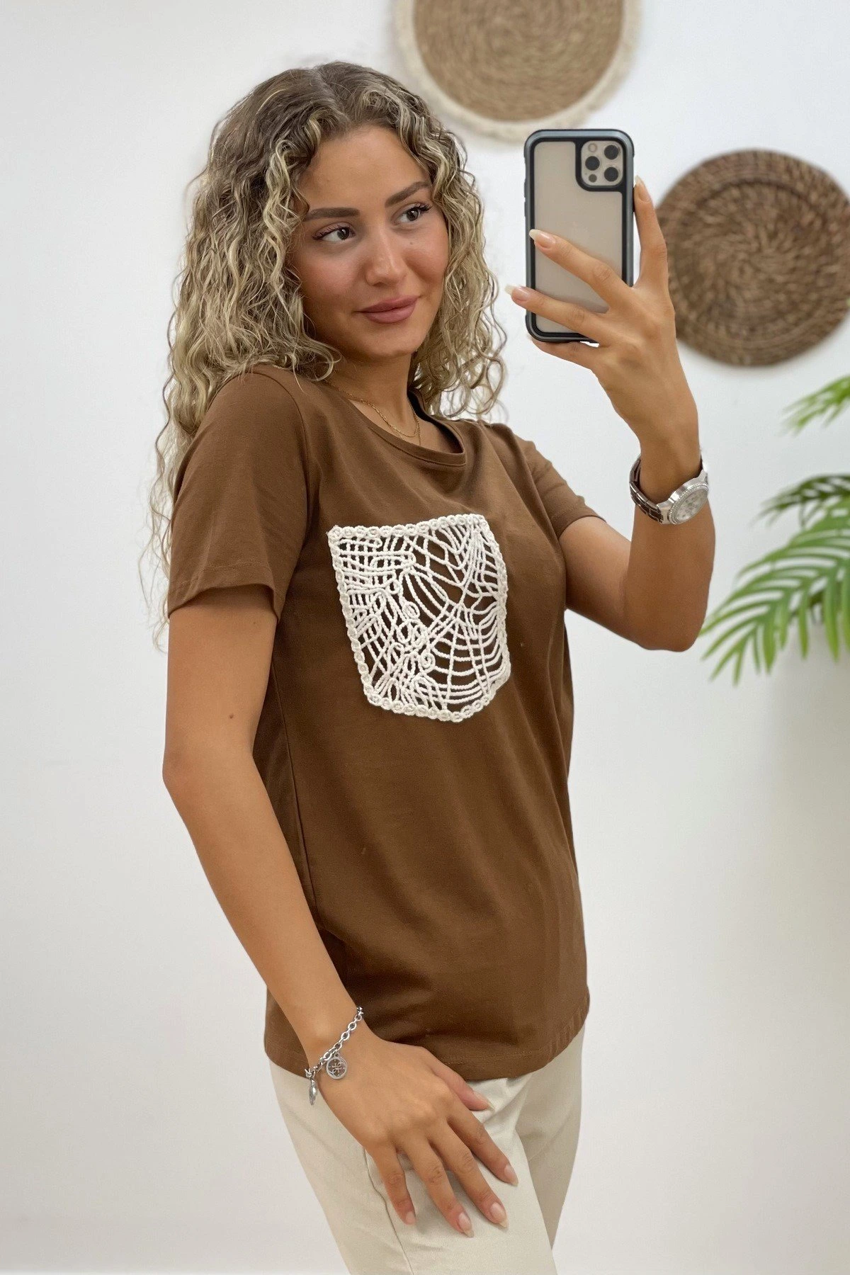 CEP MAKROME BİSİKLET YAKA TİŞÖRT – KAKAO
