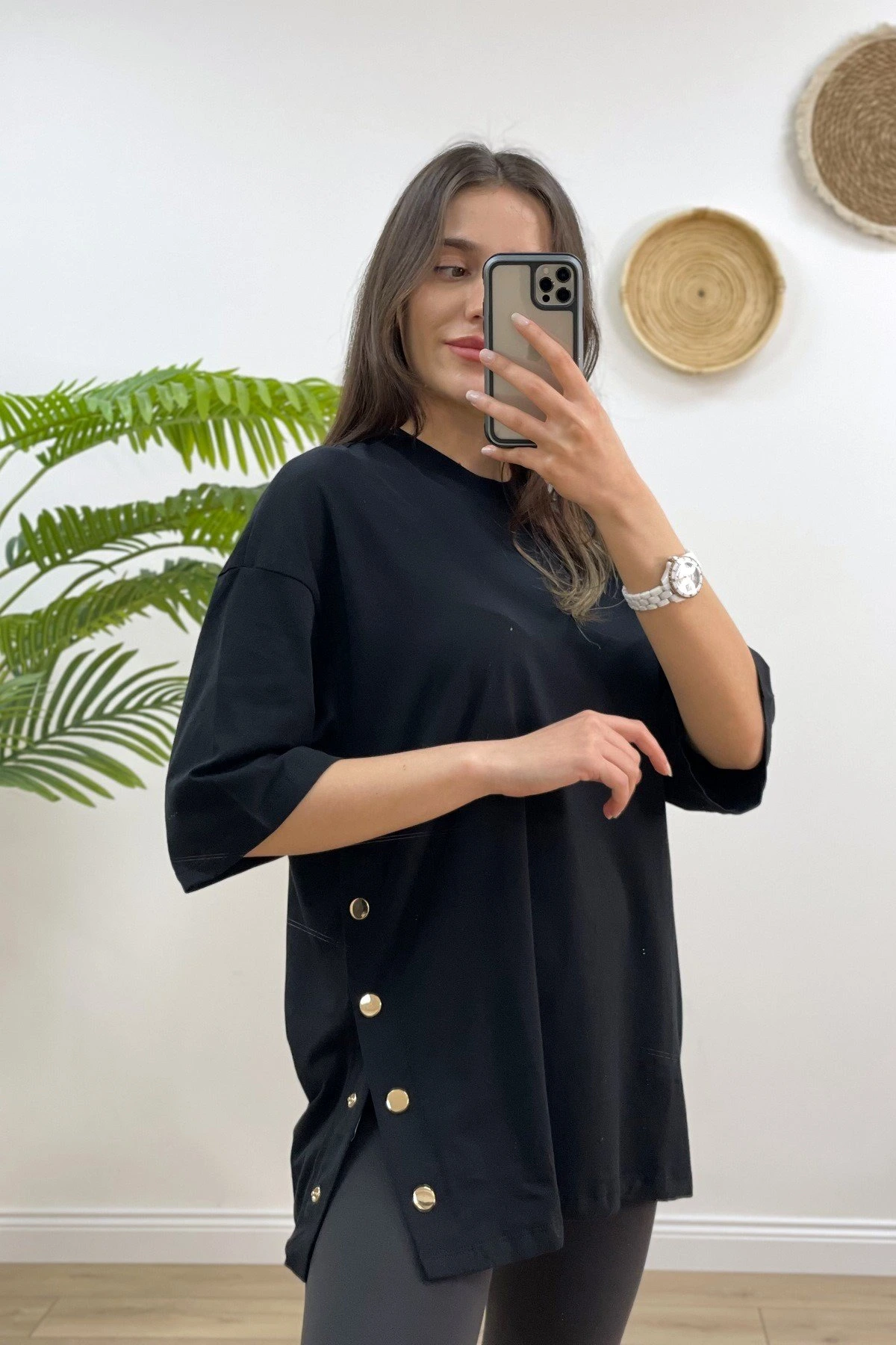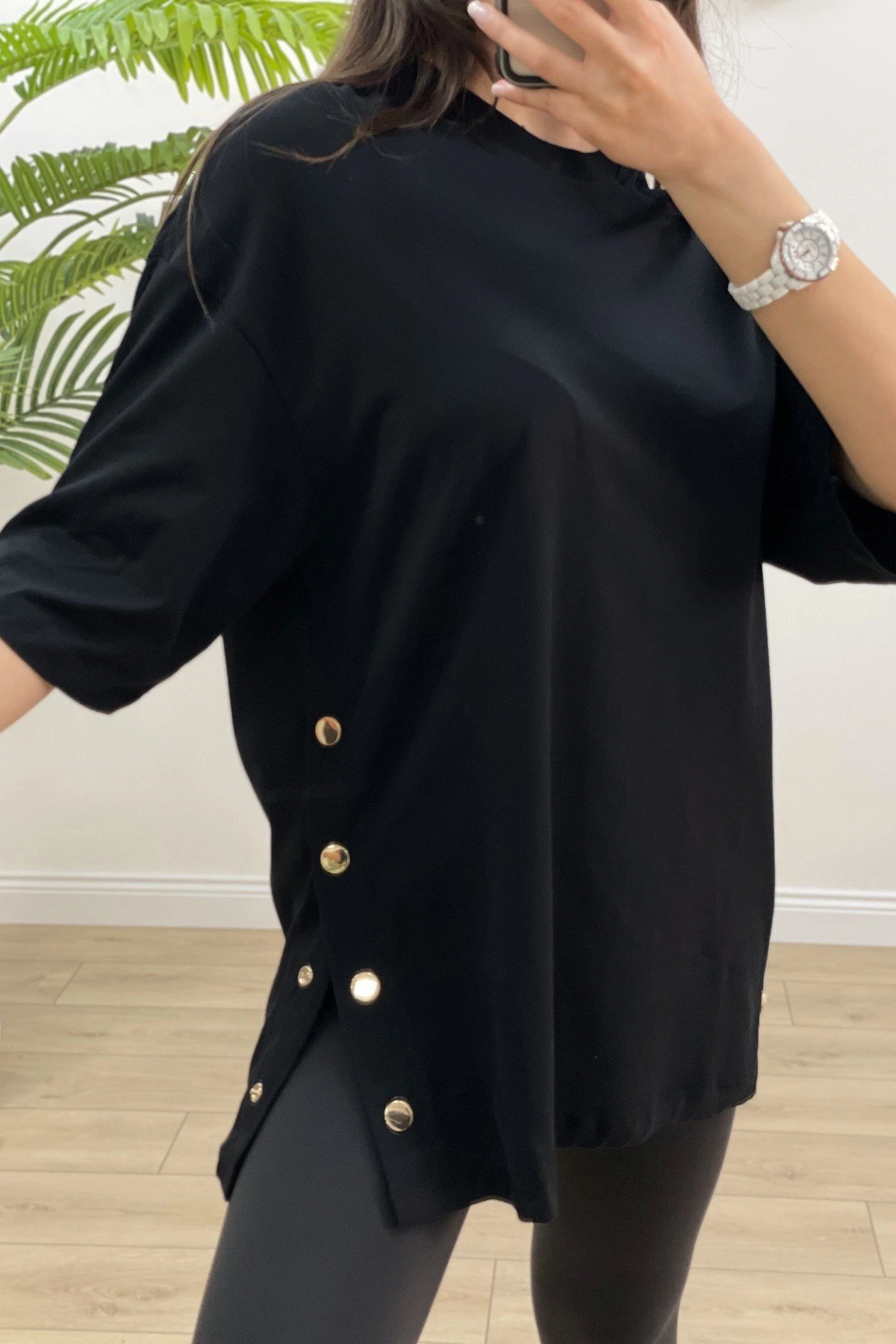 ÇİFT YAN GOLD DÜĞME TİŞÖRT – SİYAH