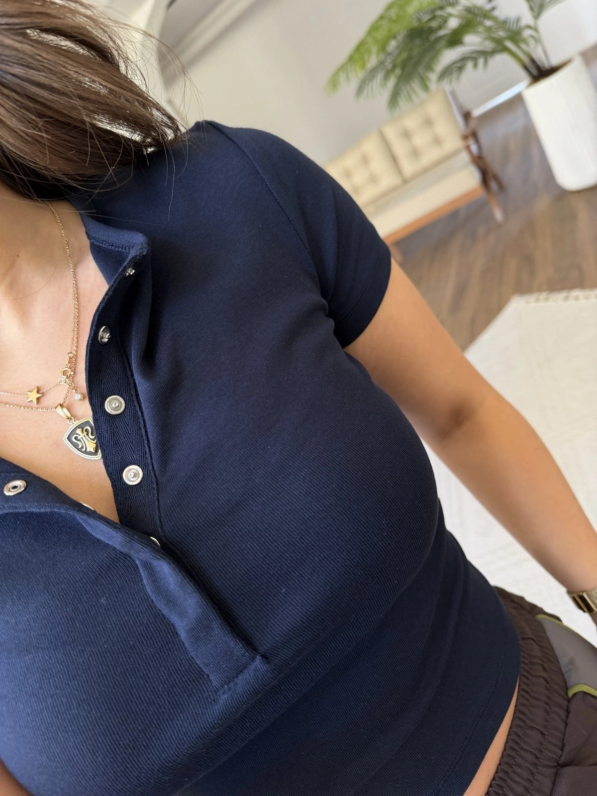ÇITÇIT DÜĞMELİ KISA KOL PAMUK MODAL TİŞÖRT – LACİVERT