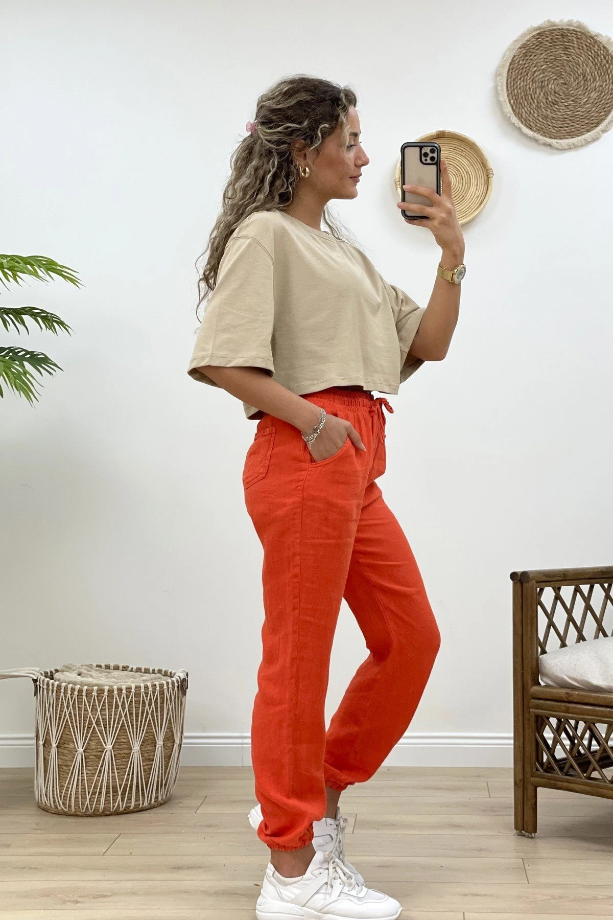 CROP BİSİKLET YAKA TİŞÖRT – BEJ