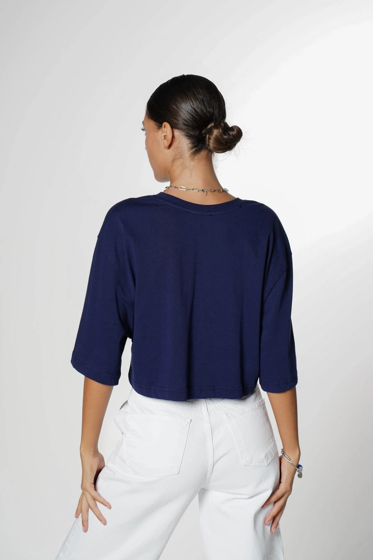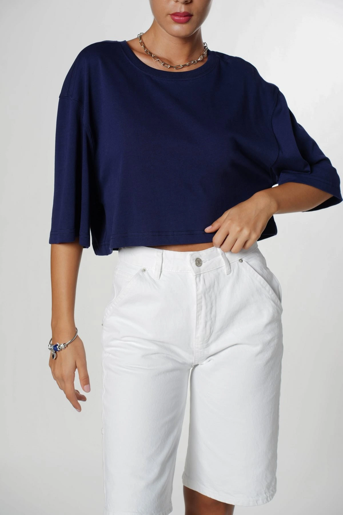 CROP BİSİKLET YAKA TİŞÖRT – LACİVERT