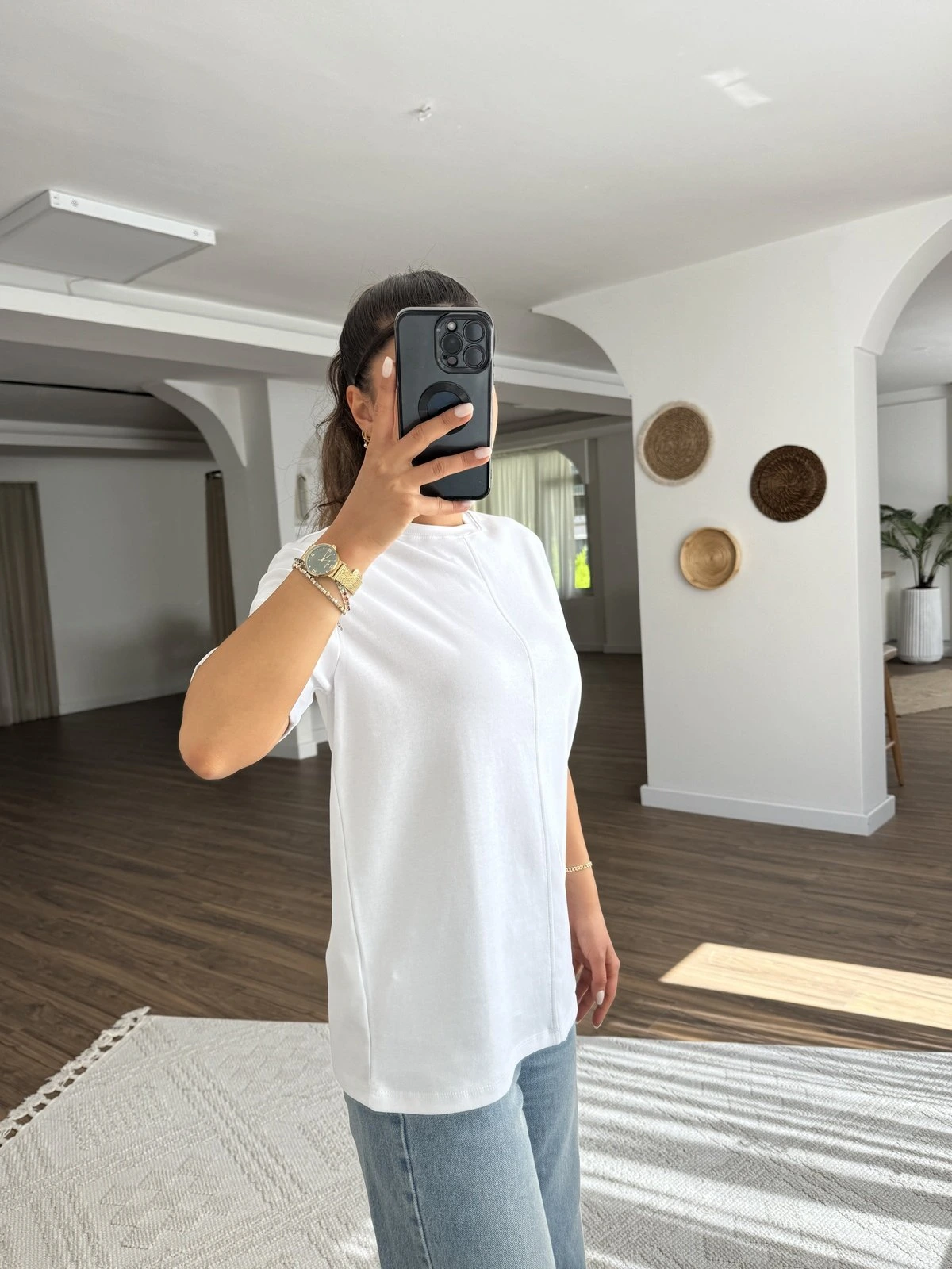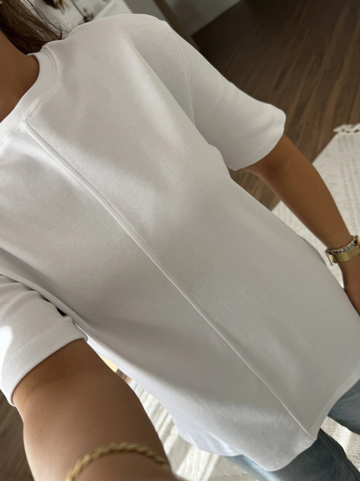 DİKİŞ DETAY SALAŞ PAMUK TİŞÖRT – BEYAZ