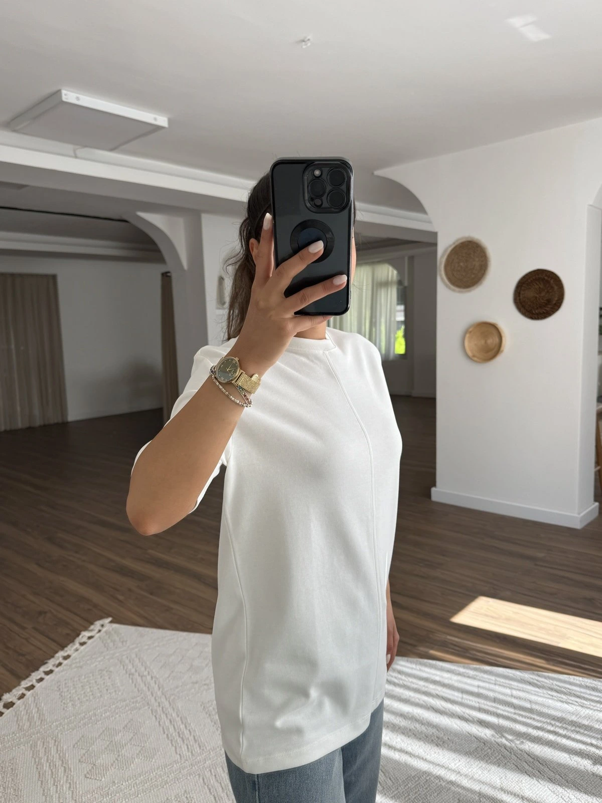 DİKİŞ DETAY SALAŞ PAMUK TİŞÖRT – EKRU