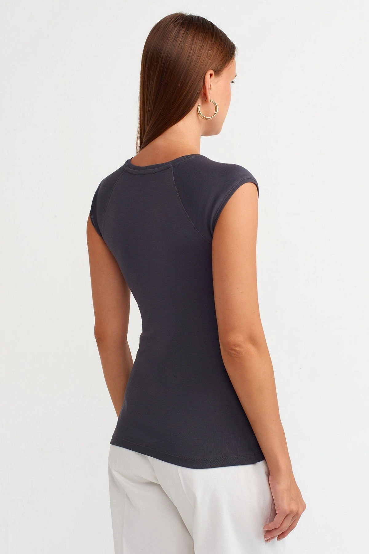 DÜŞÜK KOL DİKİŞ DETAY PAMUK TİŞÖRT – ANTRASİT