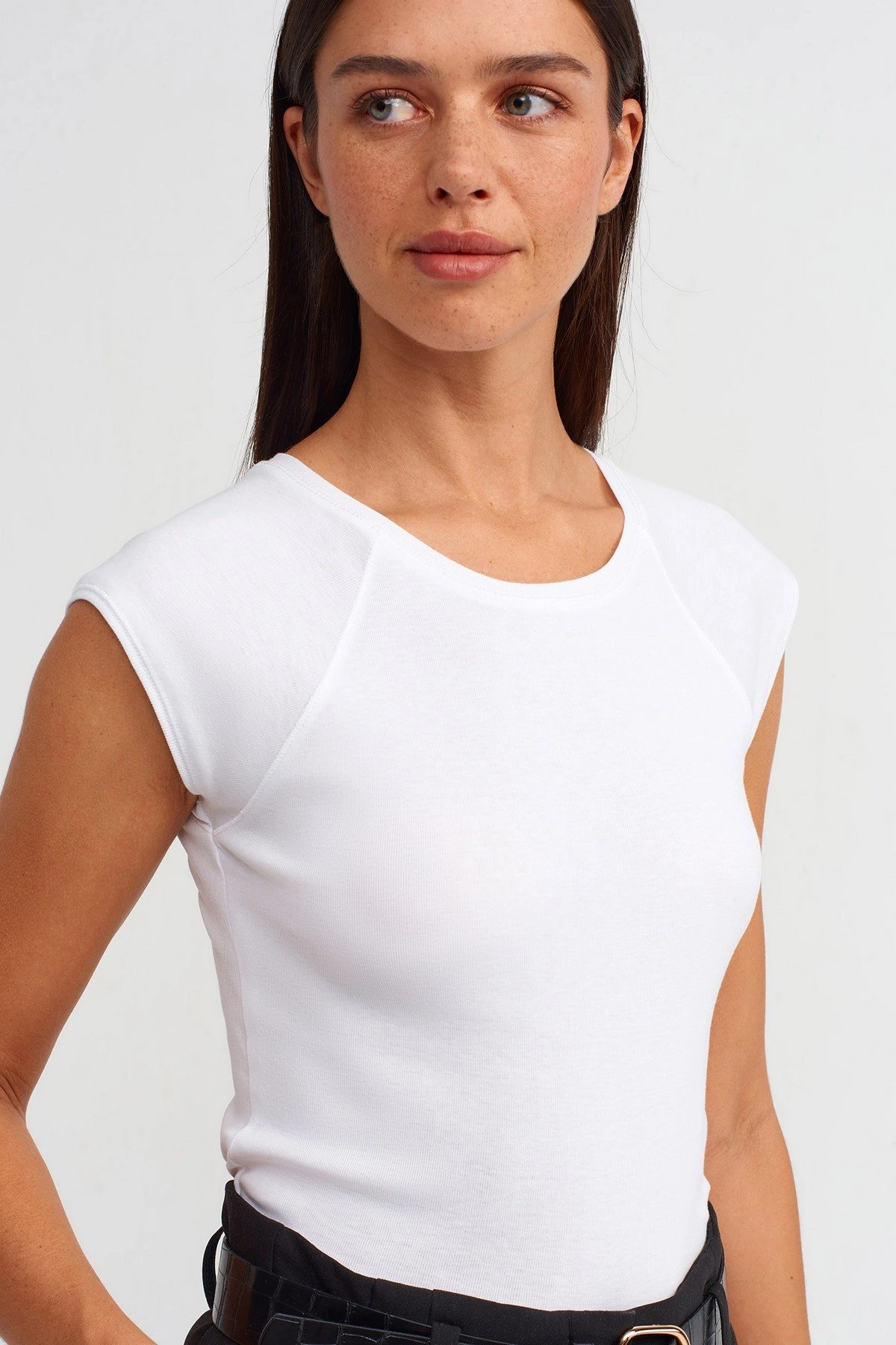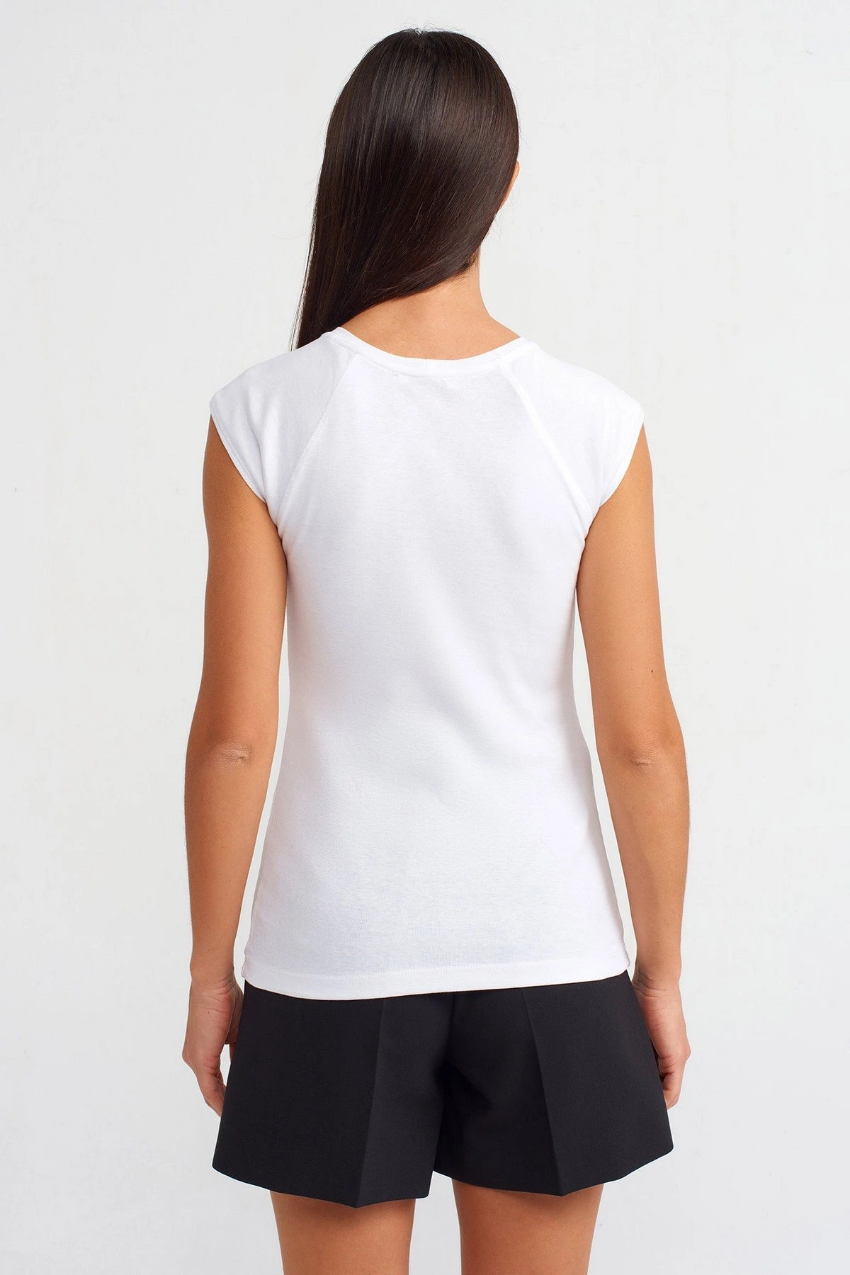 DÜŞÜK KOL DİKİŞ DETAY PAMUK TİŞÖRT – BEYAZ