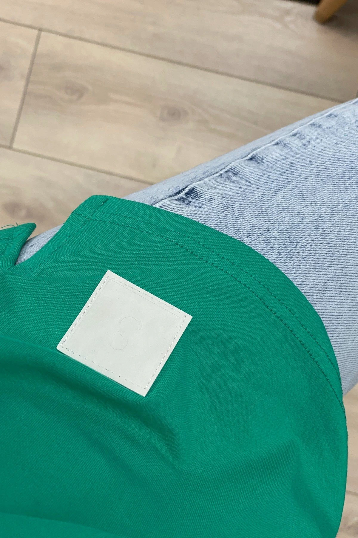 ETEĞİ DERİ DETAY KISA KOL SALAŞ TİŞÖRT – YEŞİL