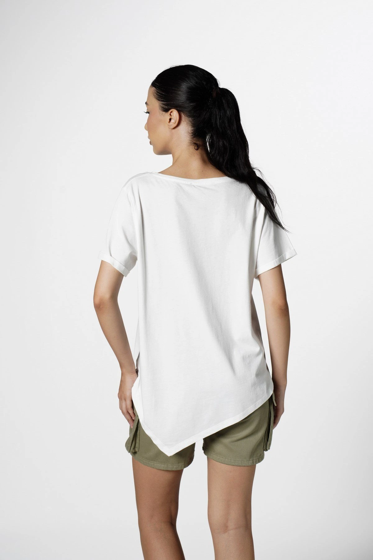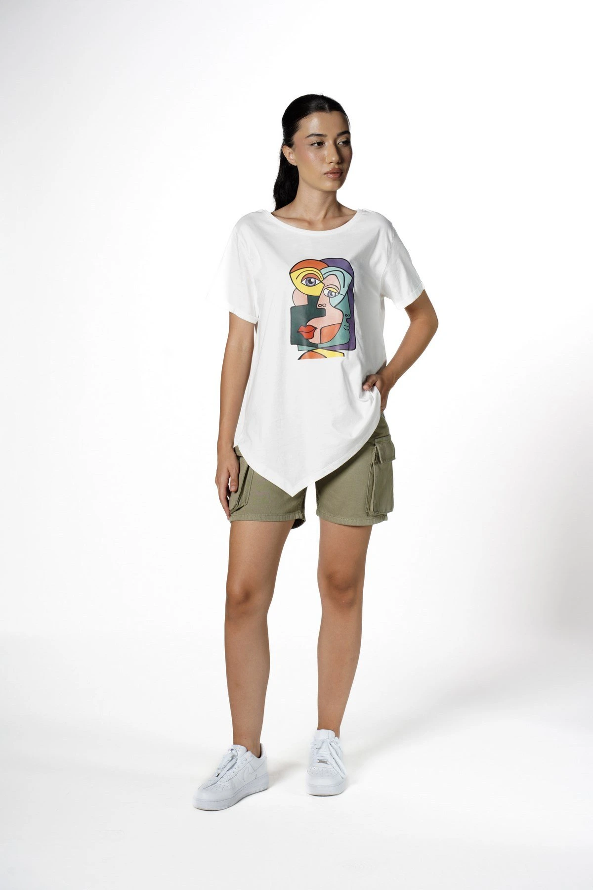 ETEĞİ VEREV ÇAPRAZ KISA KOL BASKILI TİŞÖRT – EKRU