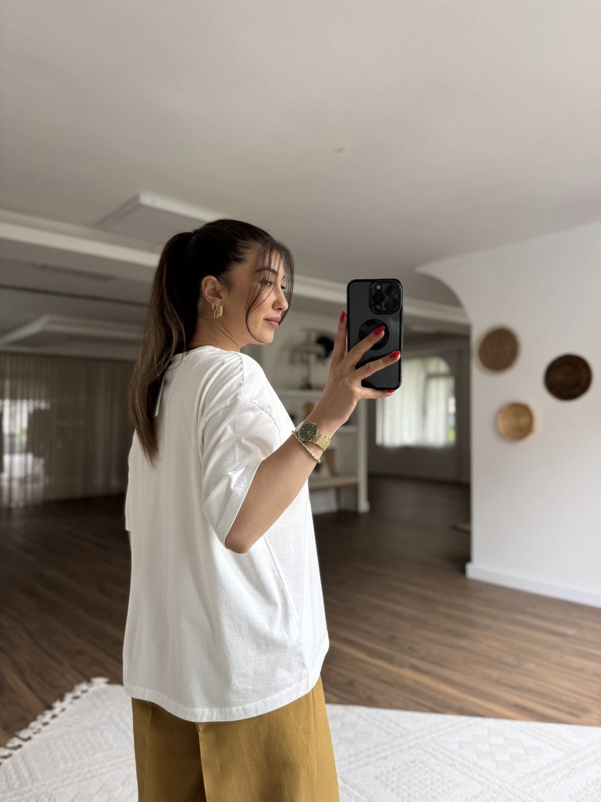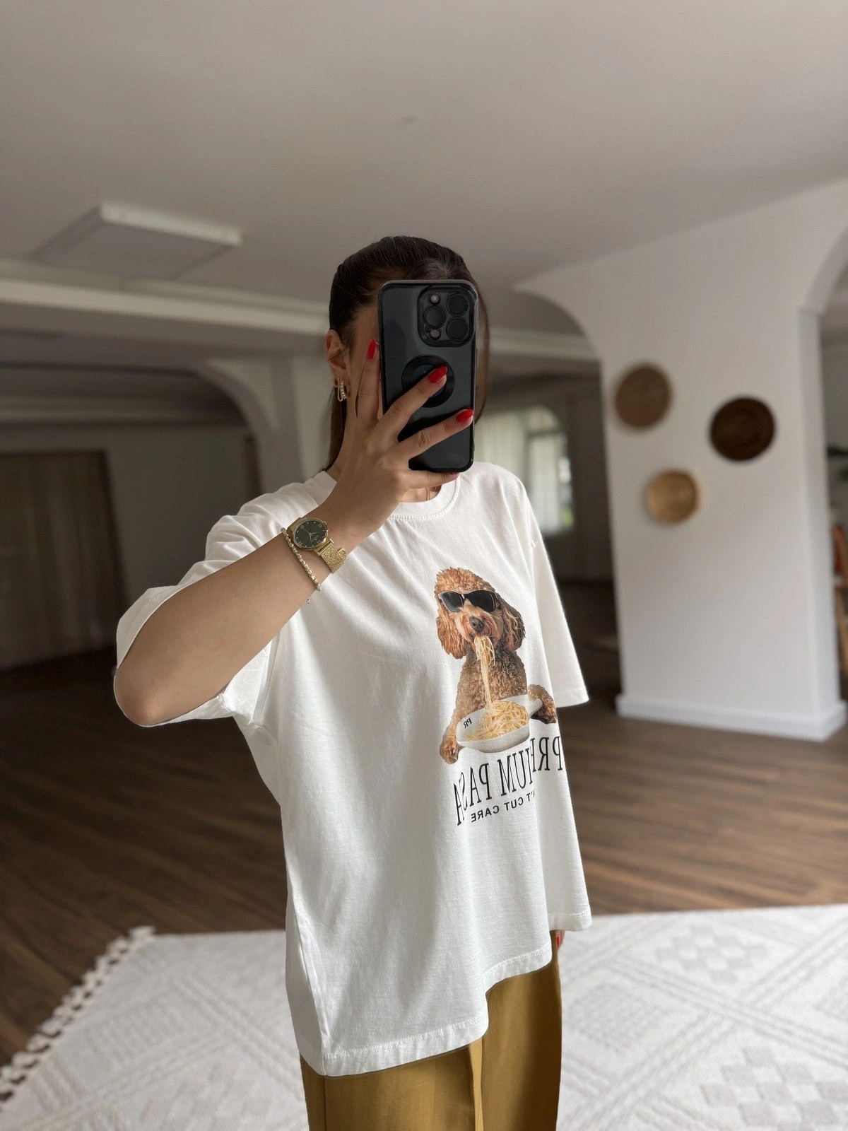 FİGÜR PREMİUM BASKI PAMUK SALAŞ TİŞÖRT – KREM