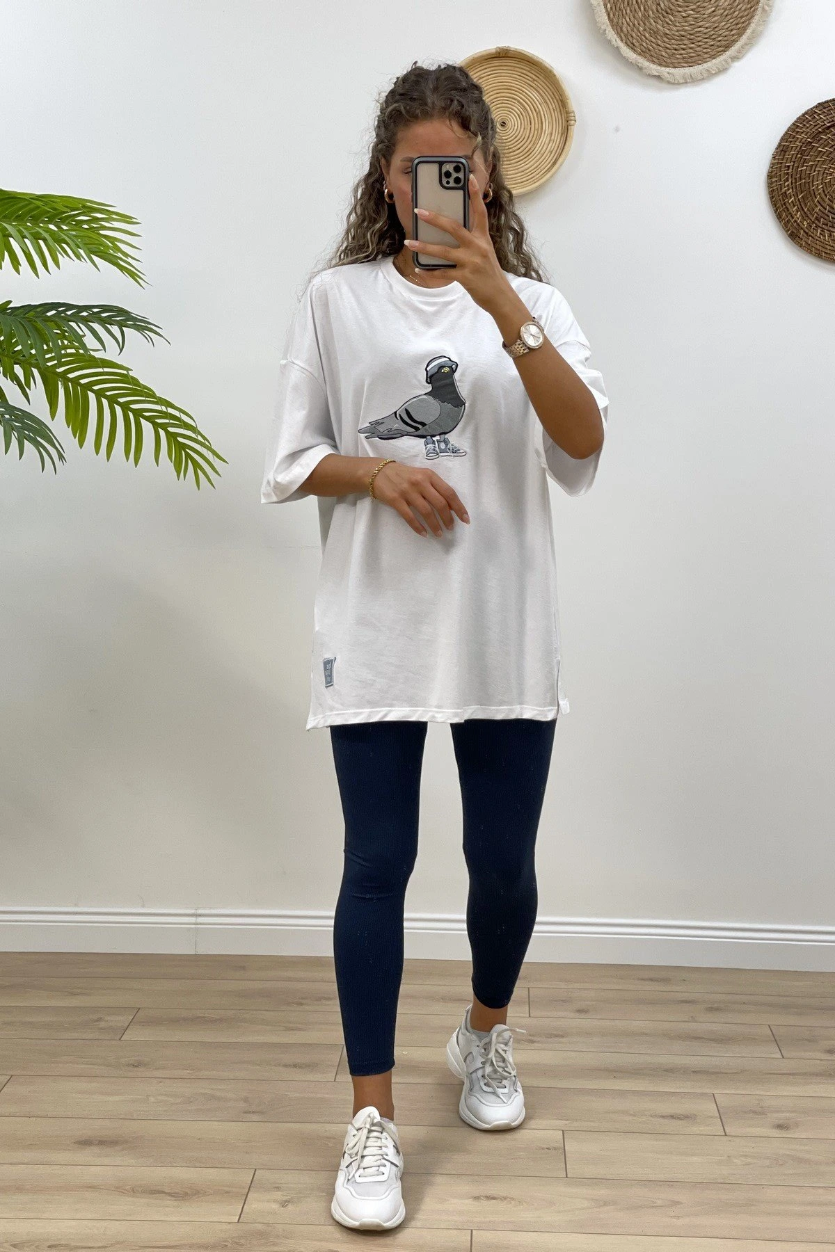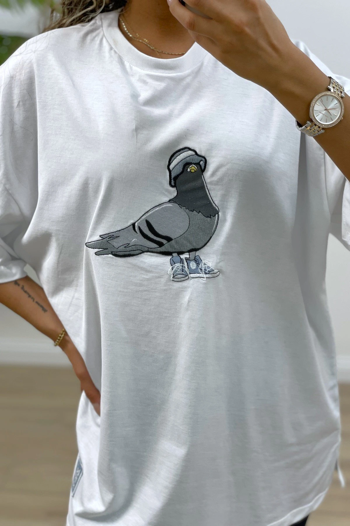 GÜVERCİN NAKIŞLI KISA KOL SALAŞ TİŞÖRT – BEYAZ