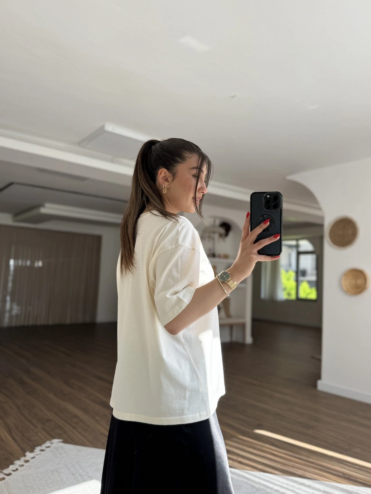 ICE CREAM BASKILI PAMUK SALAŞ TİŞÖRT - KREM