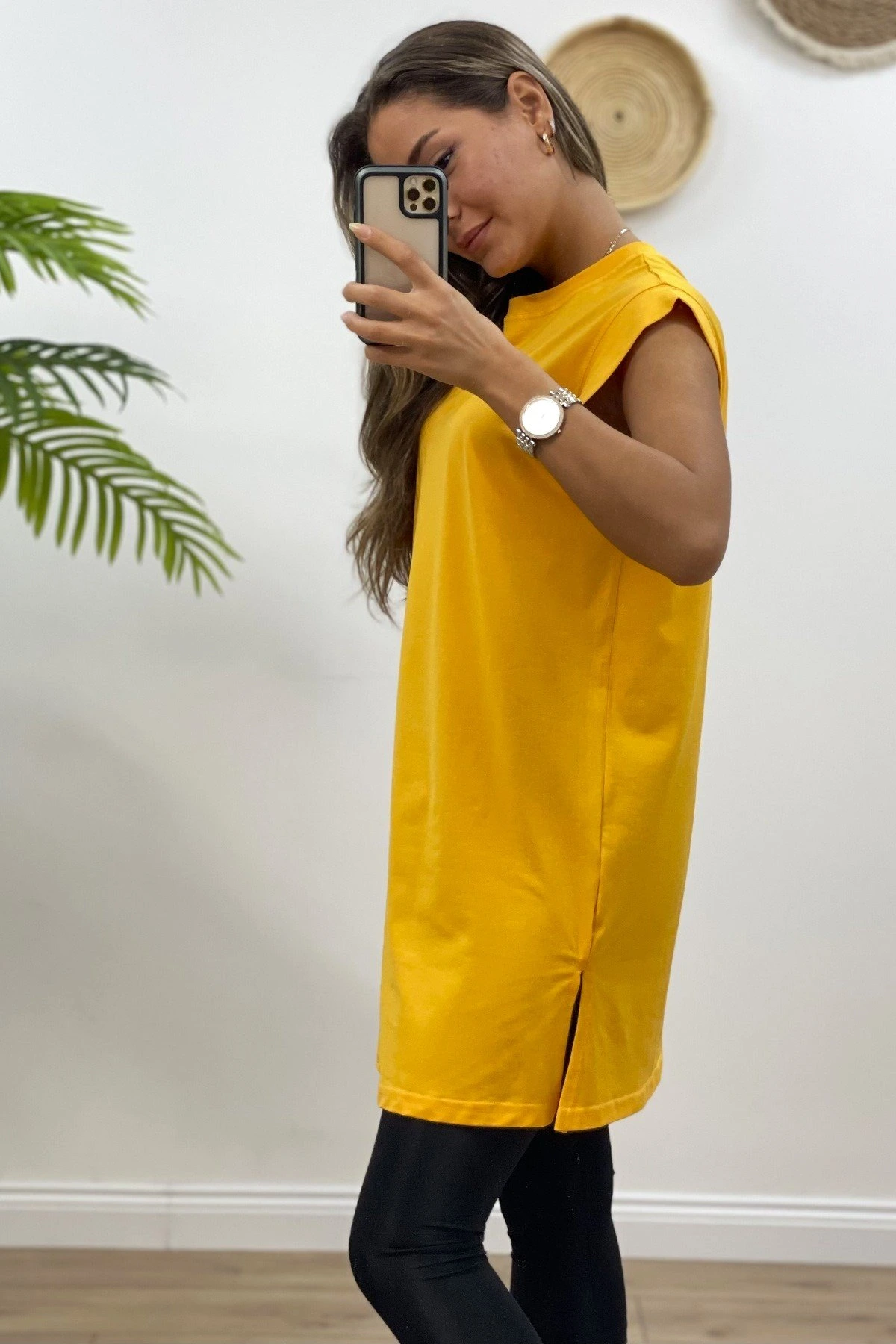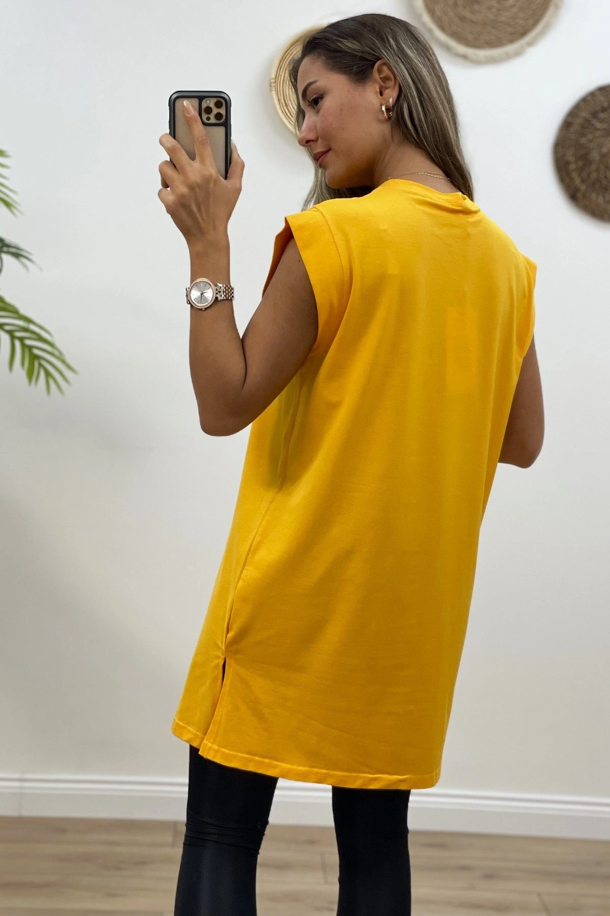 JAPONE KOL OVERSİZE UZUN TİŞÖRT – KOYU SARI
