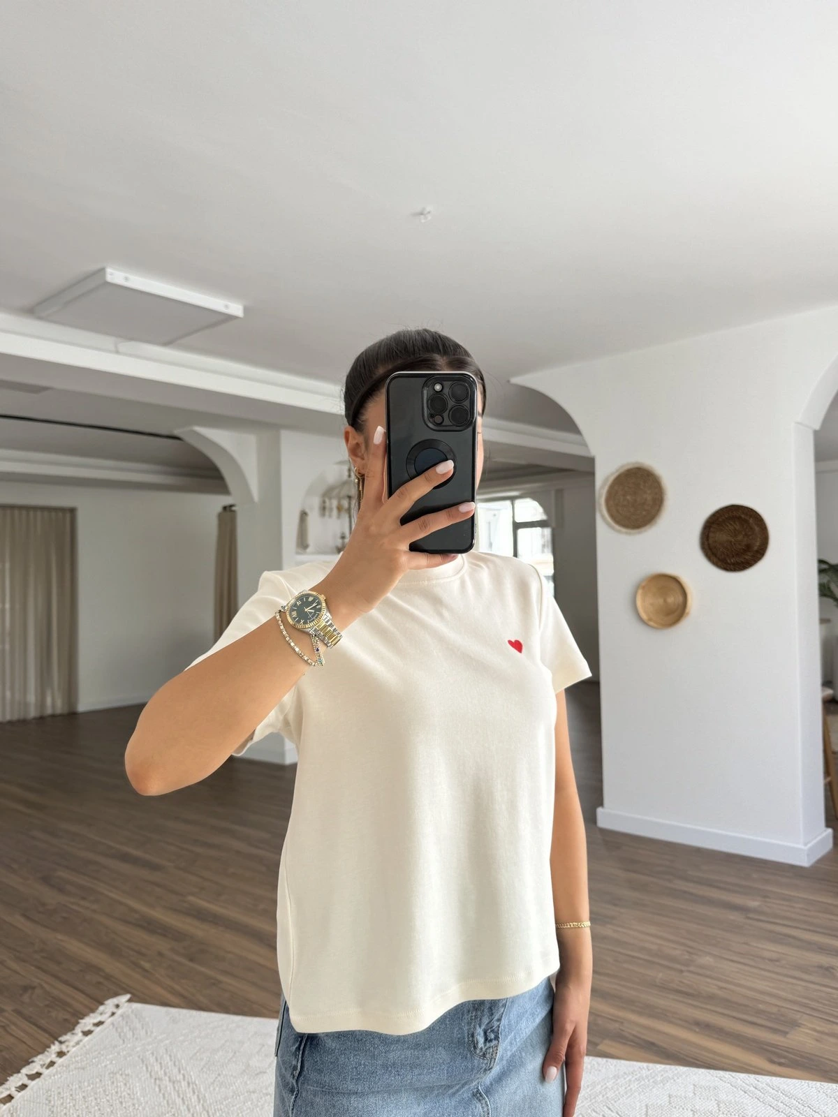 “KALP NAKIŞ DETAY BİSİKLET YAKA PAMUK TİŞÖRT – KEMİK” için yorum yapan ilk kişi siz olun Yanıtı iptal et