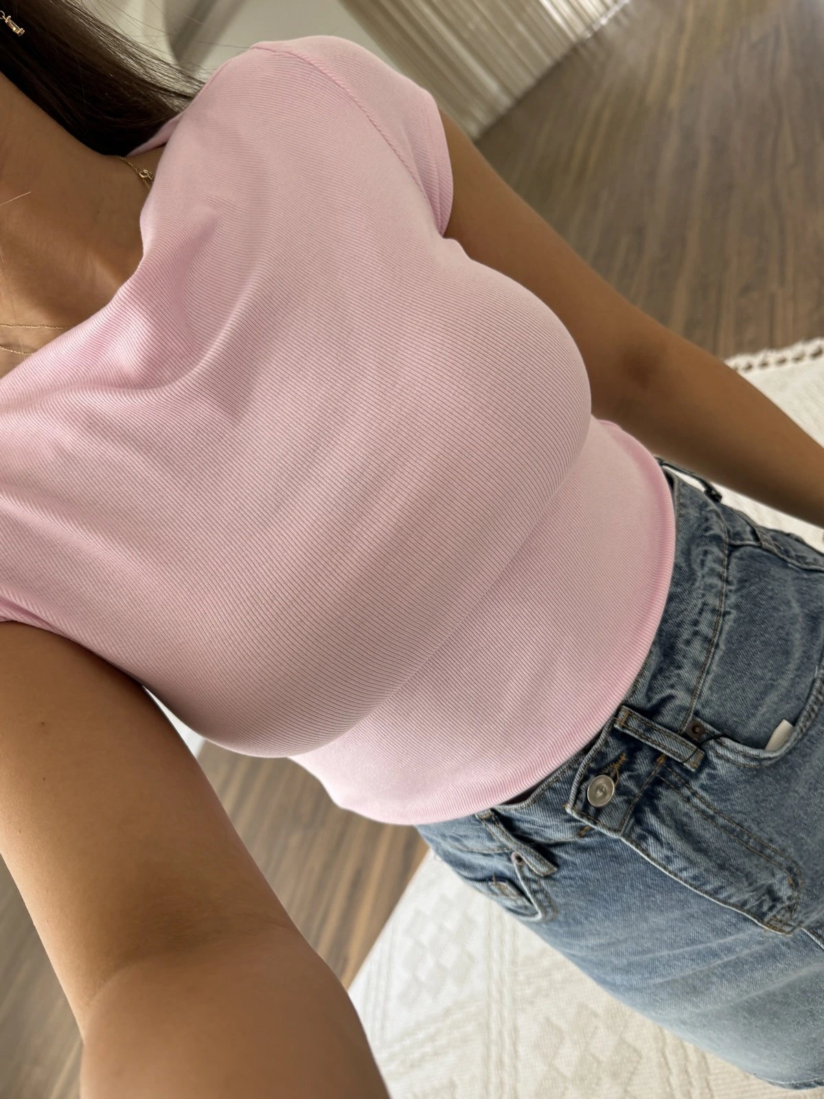KAYIK KAT YAKA LİKRALI VİSKON TİŞÖRT – AÇIK PEMBE