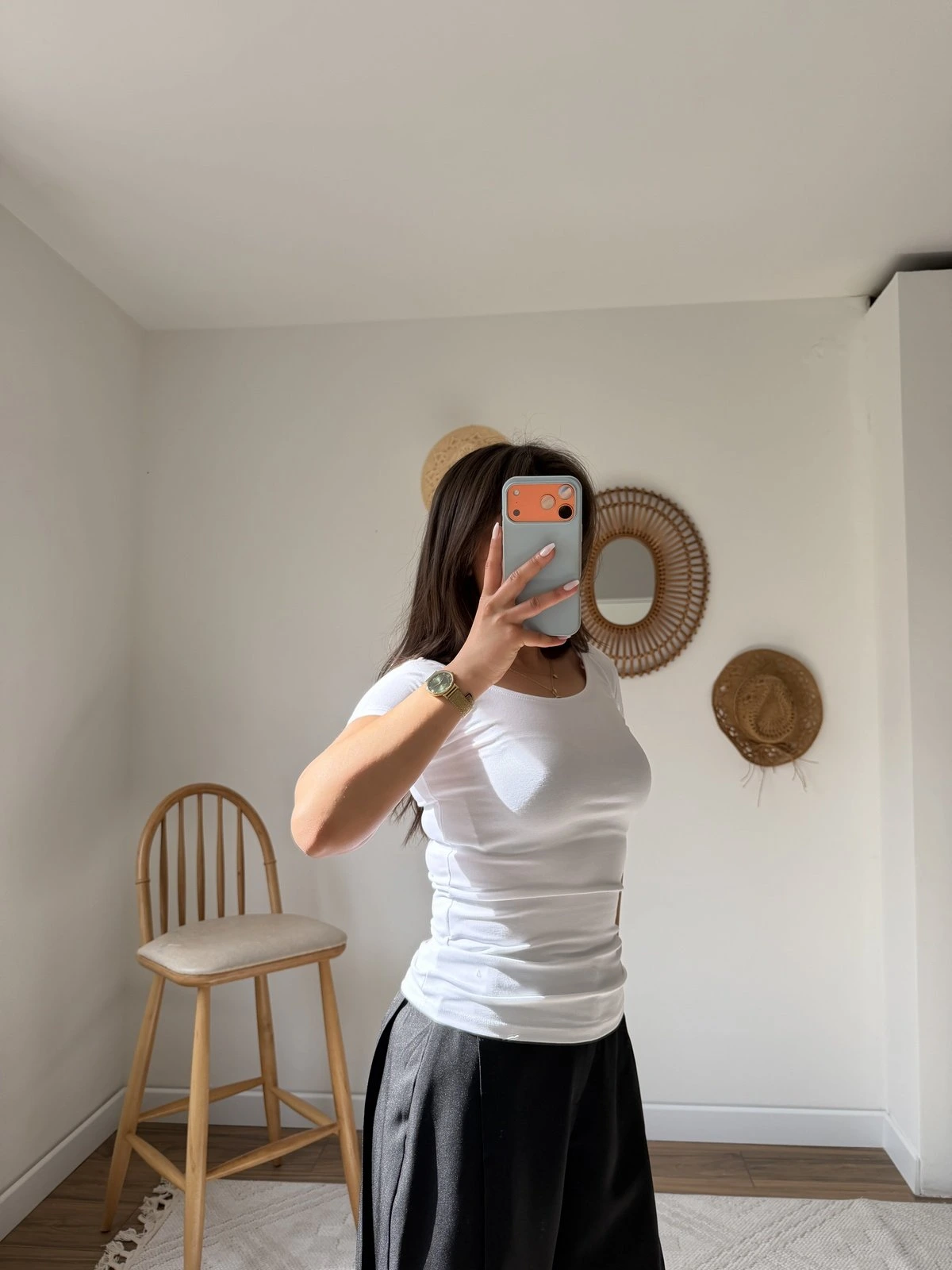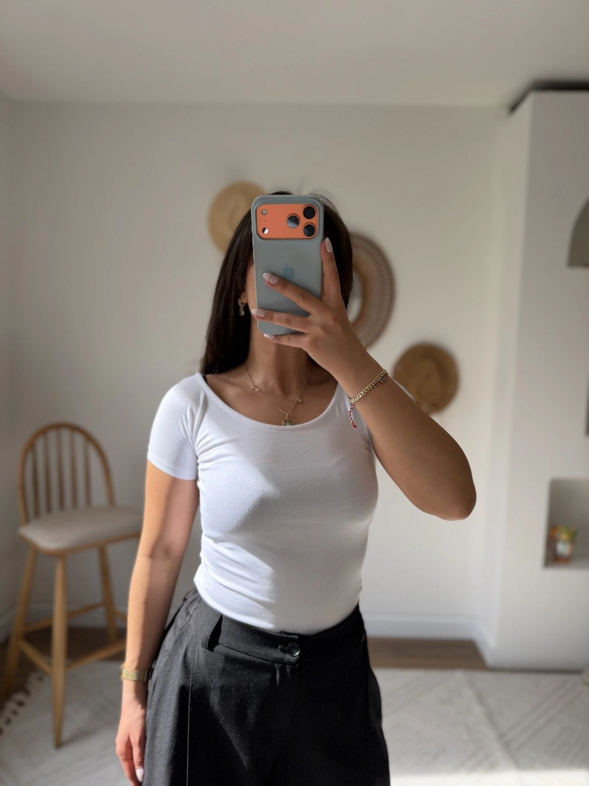 KAYIK YAKA KISA KOL MODAL PAMUK TİŞÖRT – BEYAZ