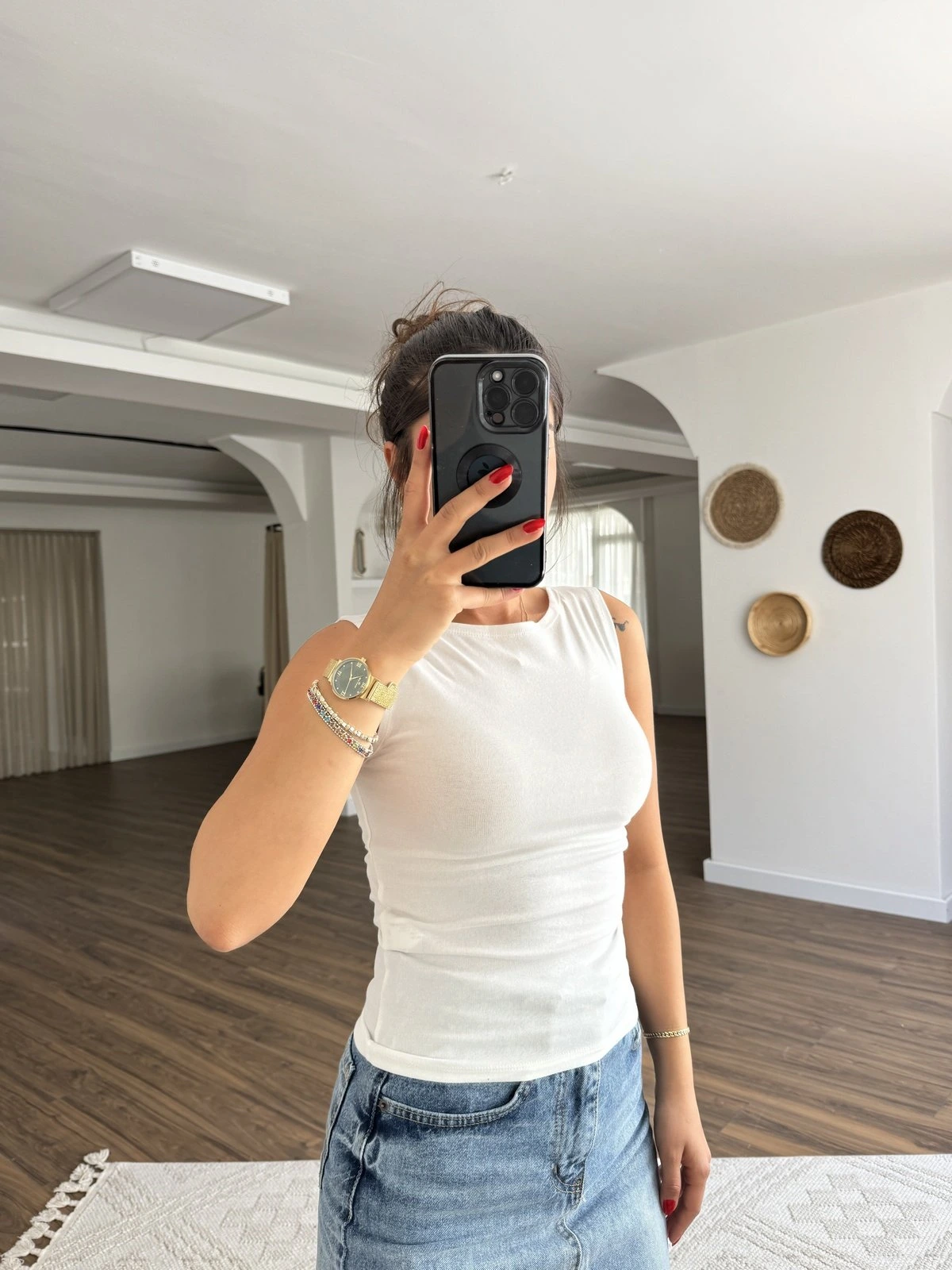 KAYIK YAKA KOLSUZ PAMUK ATLET – EKRU