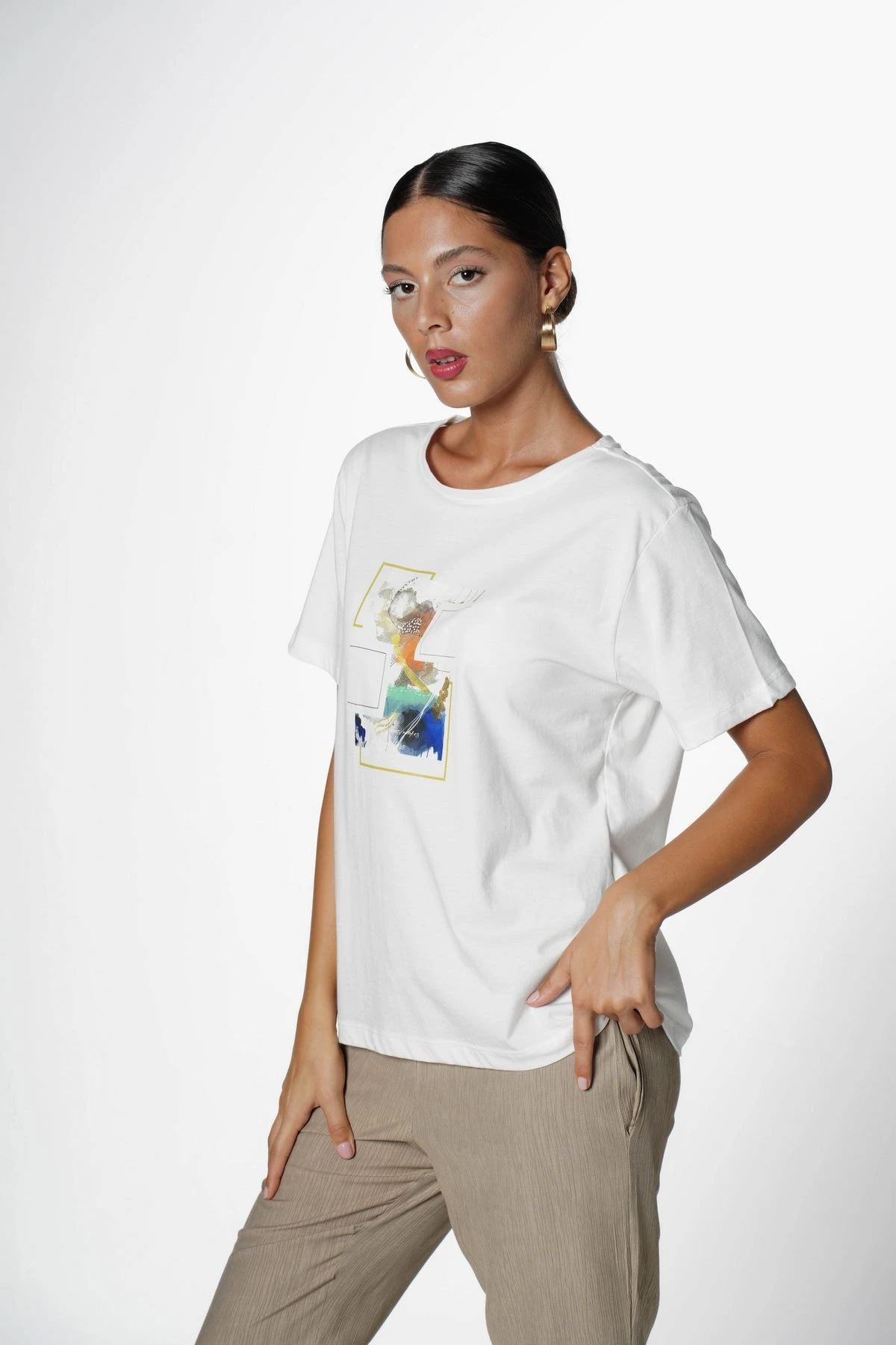 KISA KOL BASKILI TİŞÖRT – EKRU