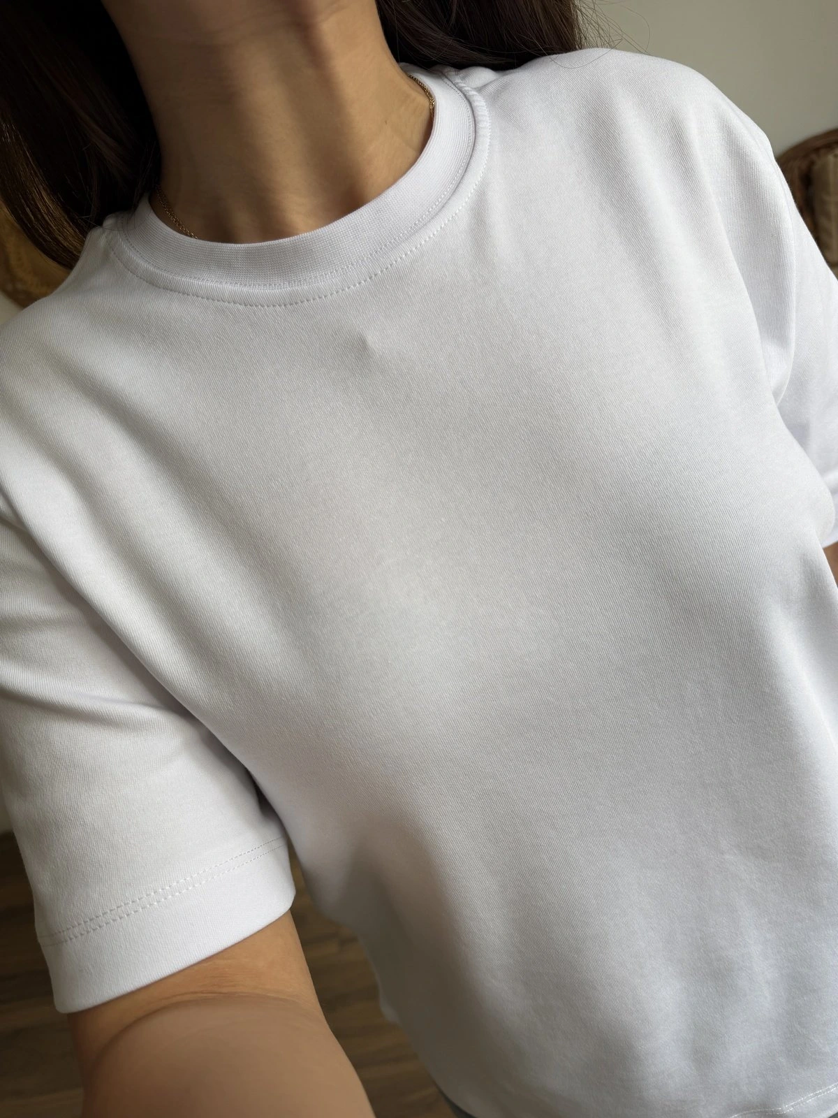 KISA KOL PAMUK LİKRA TİŞÖRT – BEYAZ