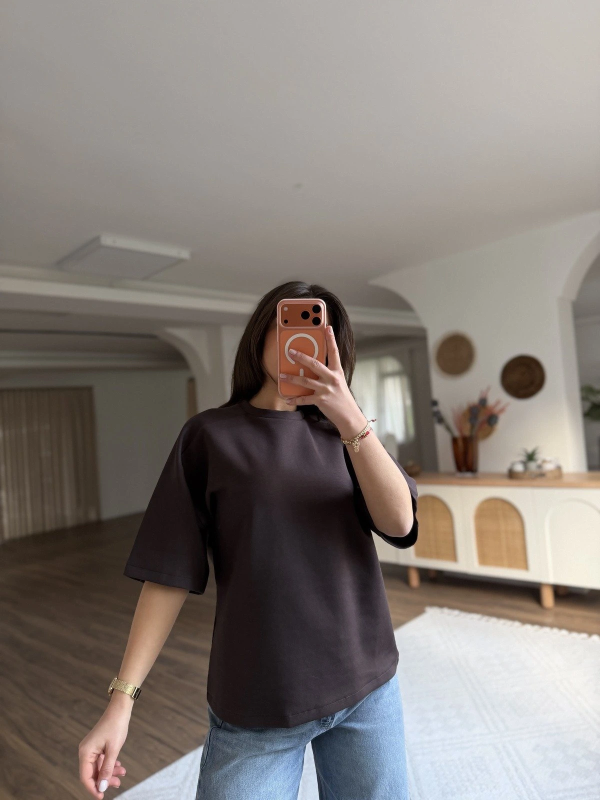 KISA KOLLU SALAŞ PAMUK TİŞÖRT – KOYU KAHVE