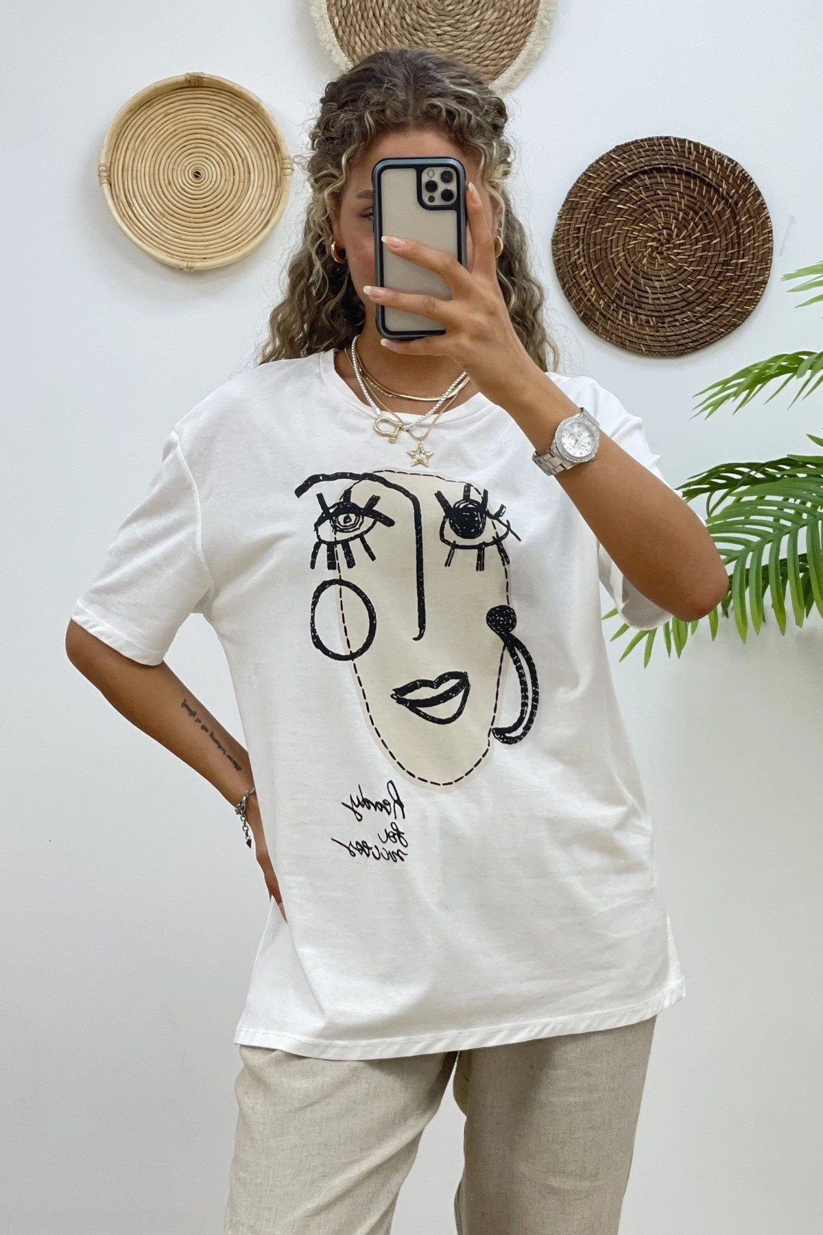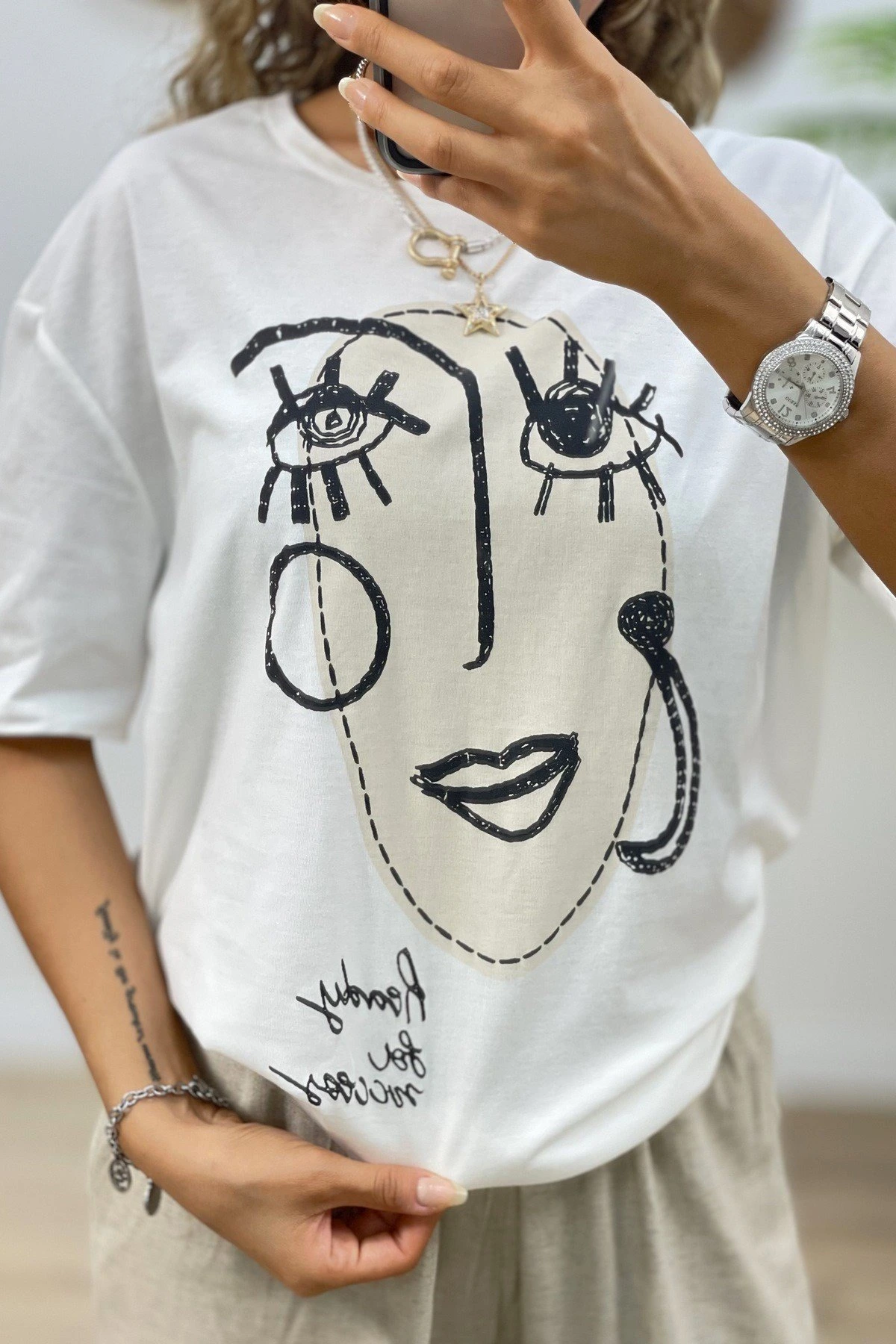KIZ BASKI SALAŞ TİŞÖRT – EKRU
