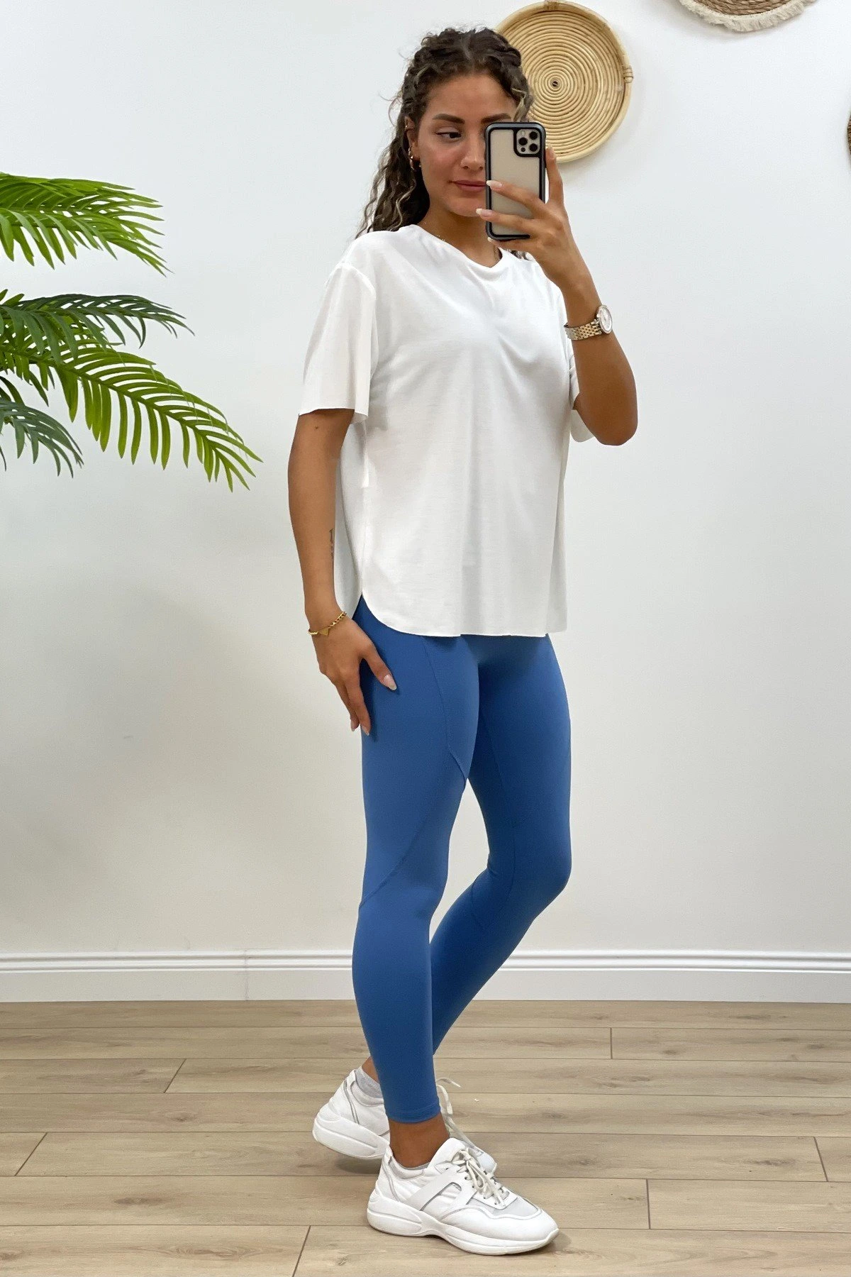V KEMER DİKİŞLİ SPORCU TAYT - MAVİ