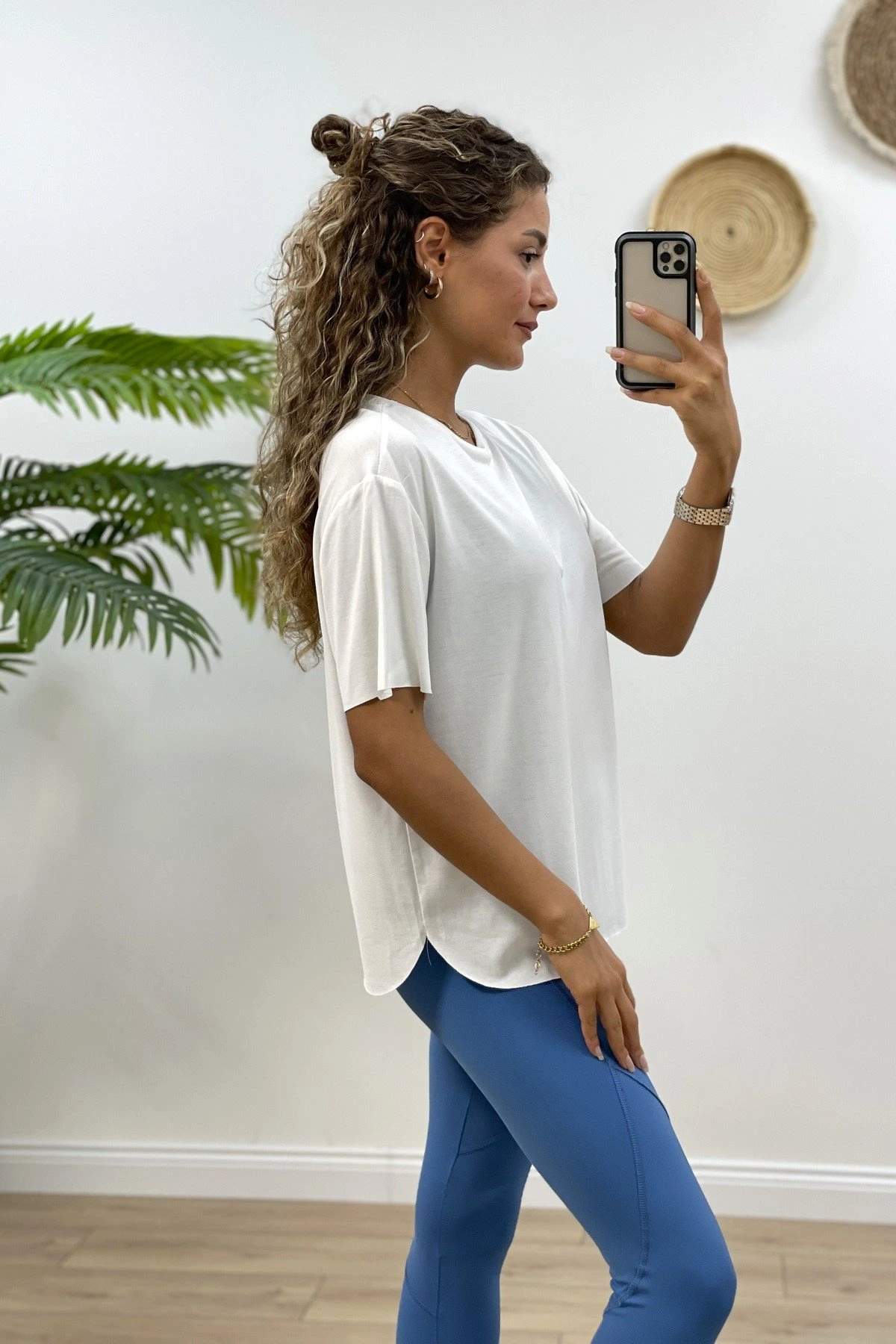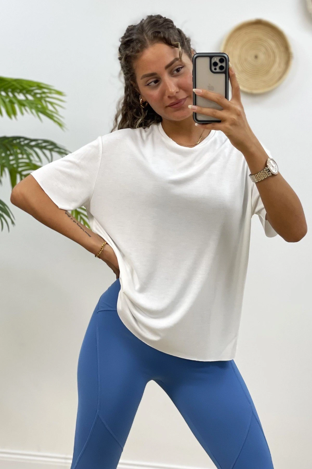 LAZER KESİM BİSİKLET YAKA MODAL TİŞÖRT – EKRU