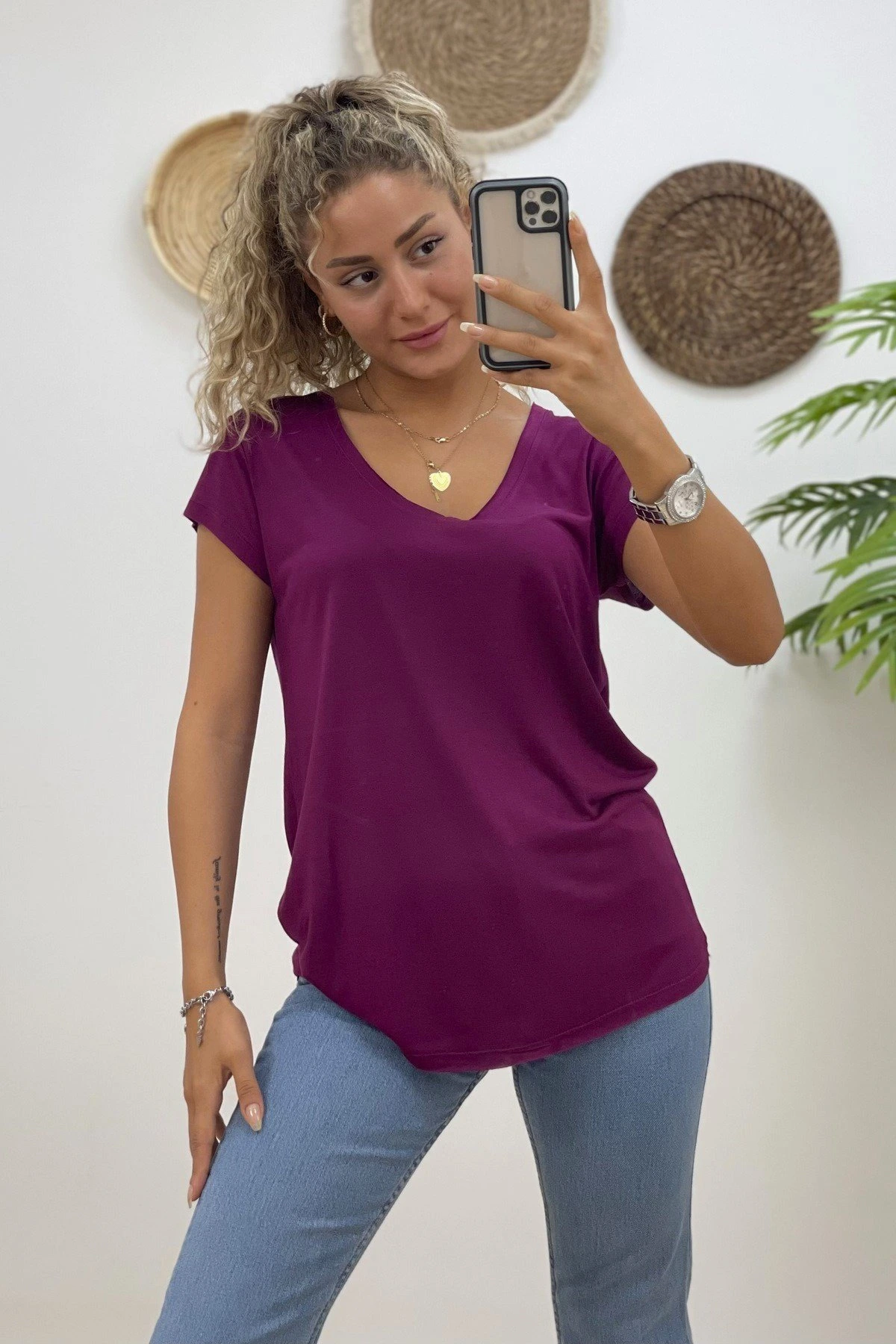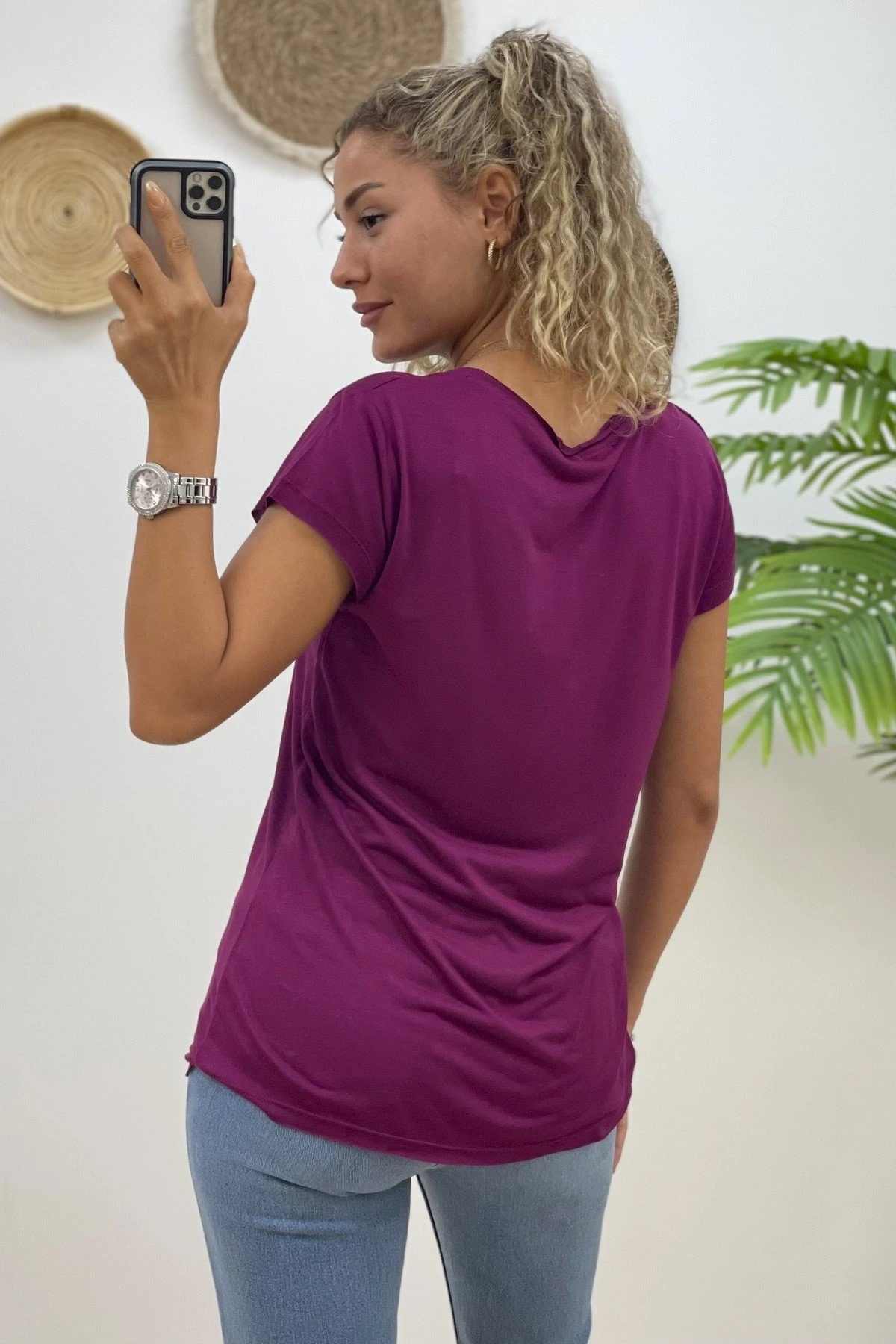 LAZER KESİM YAKA KISA KOL VİSKON TİŞÖRT – MÜRDÜM