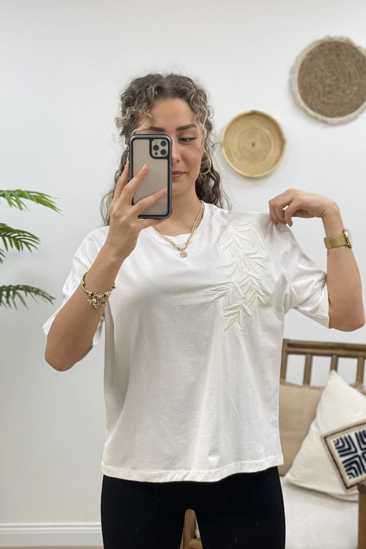 NAKIŞLI TİŞÖRT - SİYAH