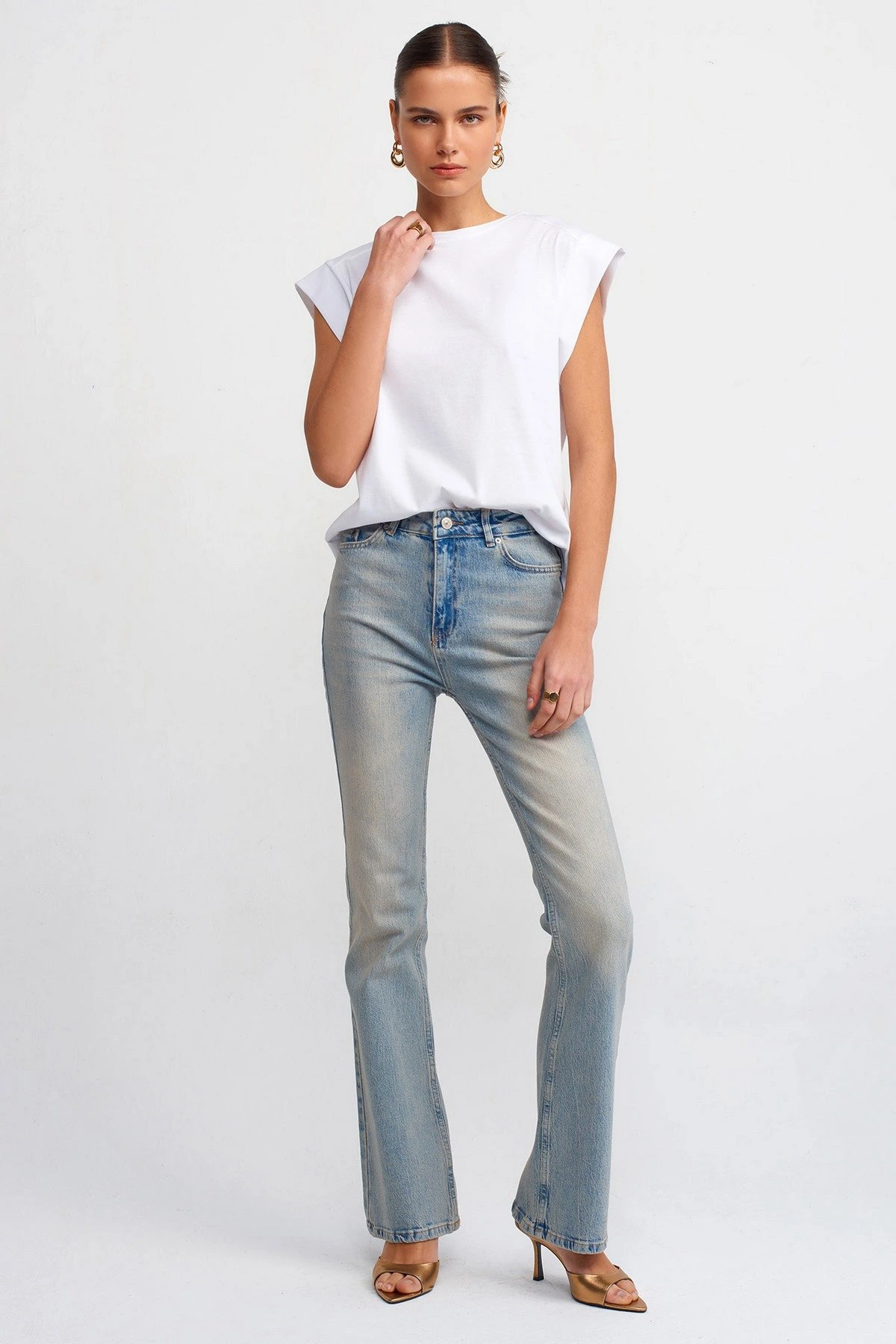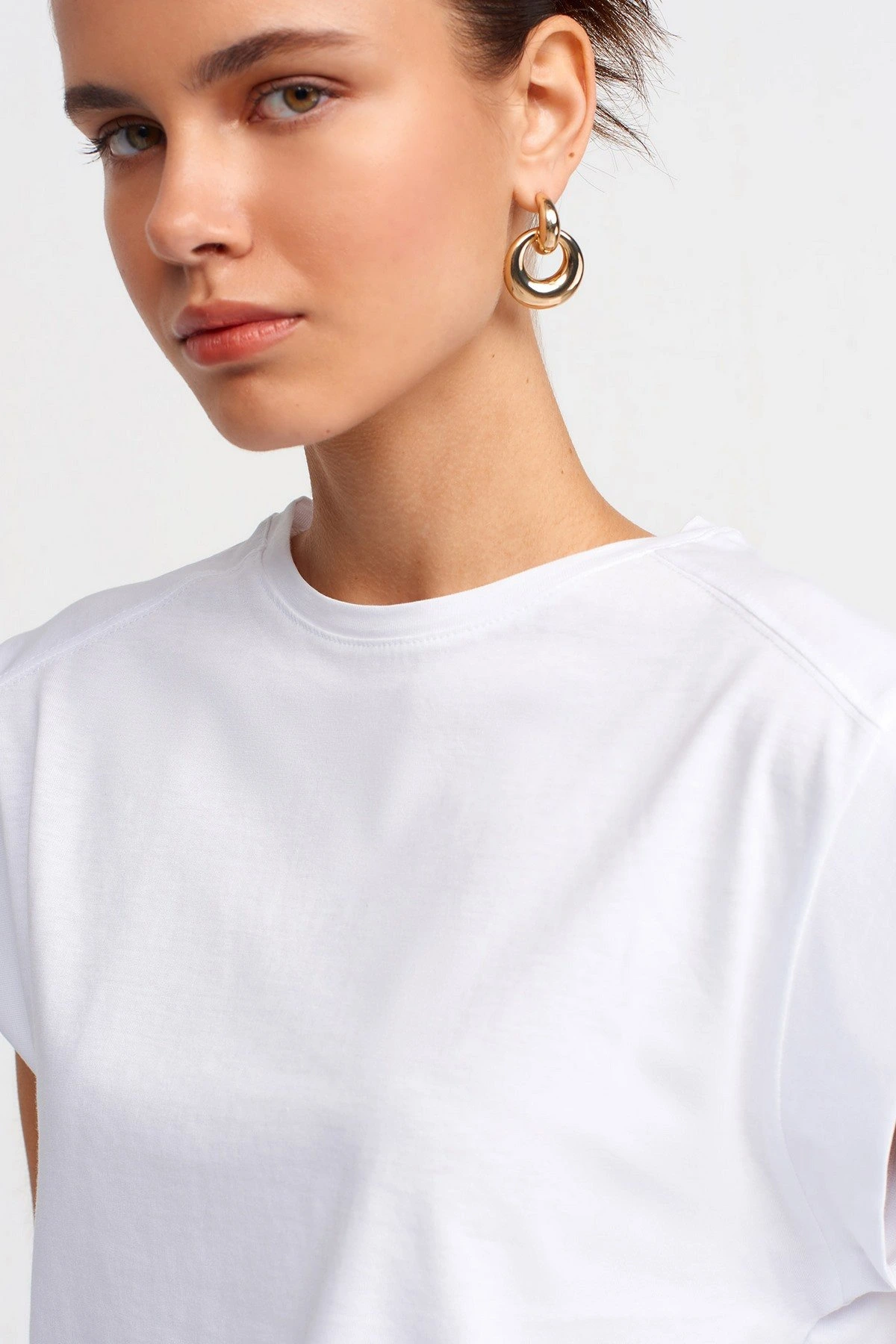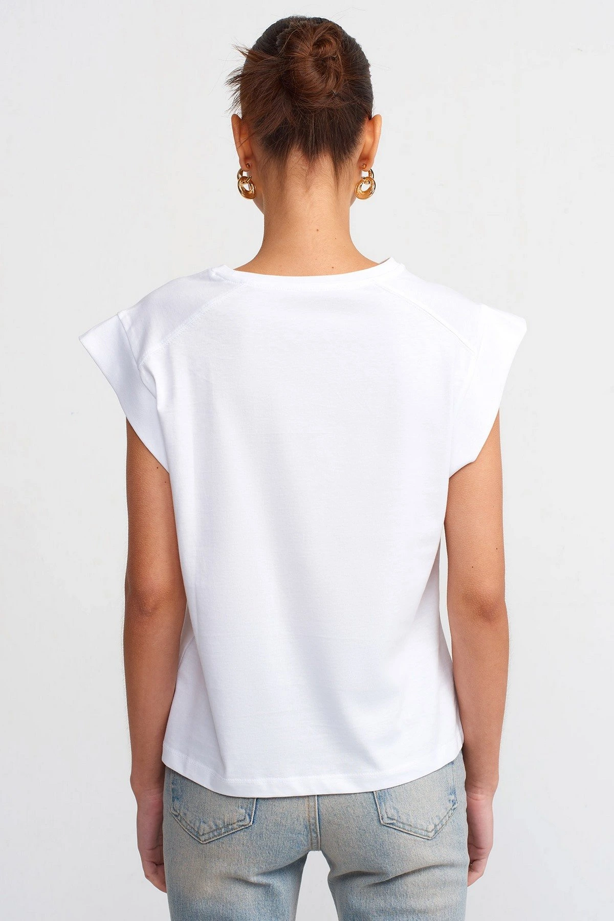 OMUZ DİKİŞ DETAY KOL DOKUMA SALAŞ PAMUK TİŞÖRT – BEYAZ