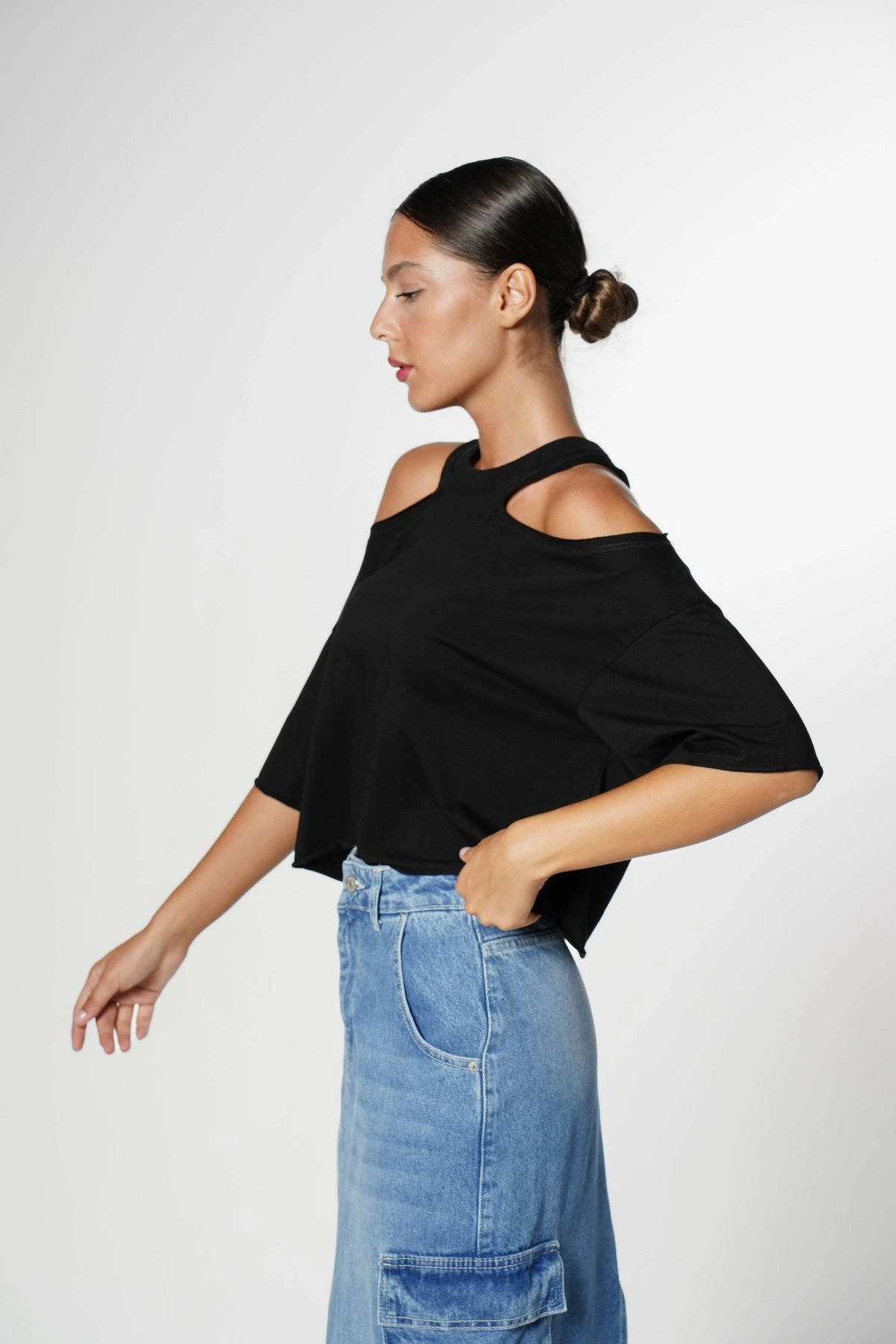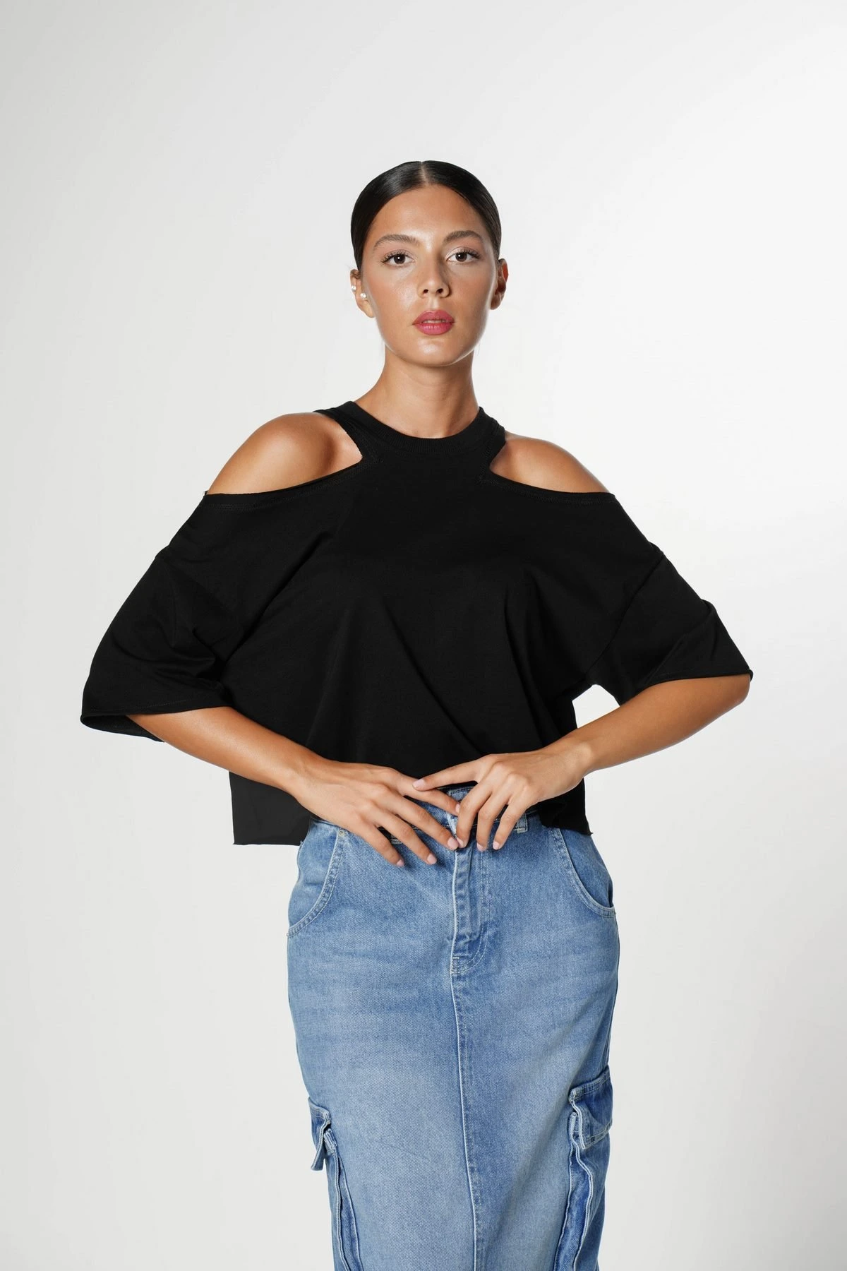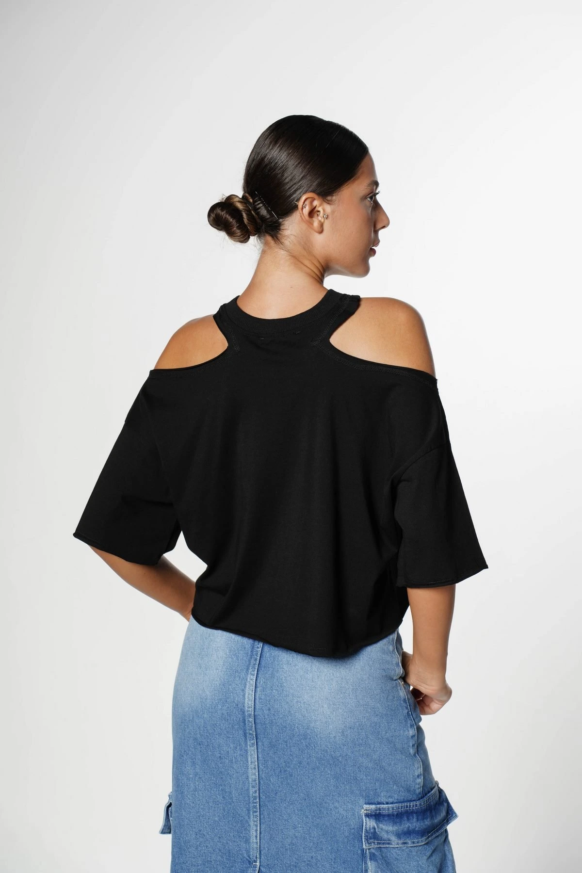OMUZ PENCERE CROP TİŞÖRT – SİYAH