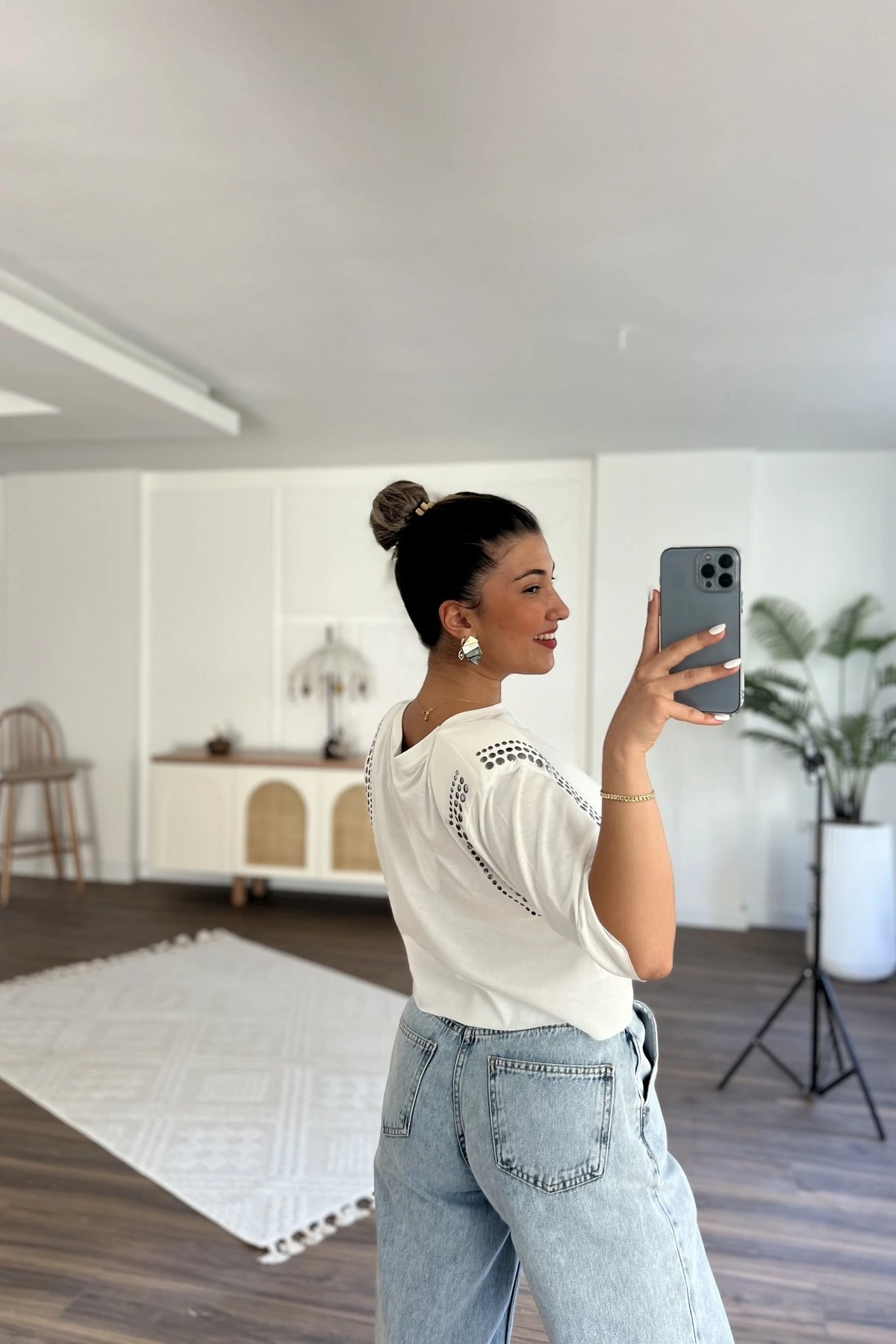 OMUZ ZIMBA VATKALI CROP PAMUK TİŞÖRT – EKRU