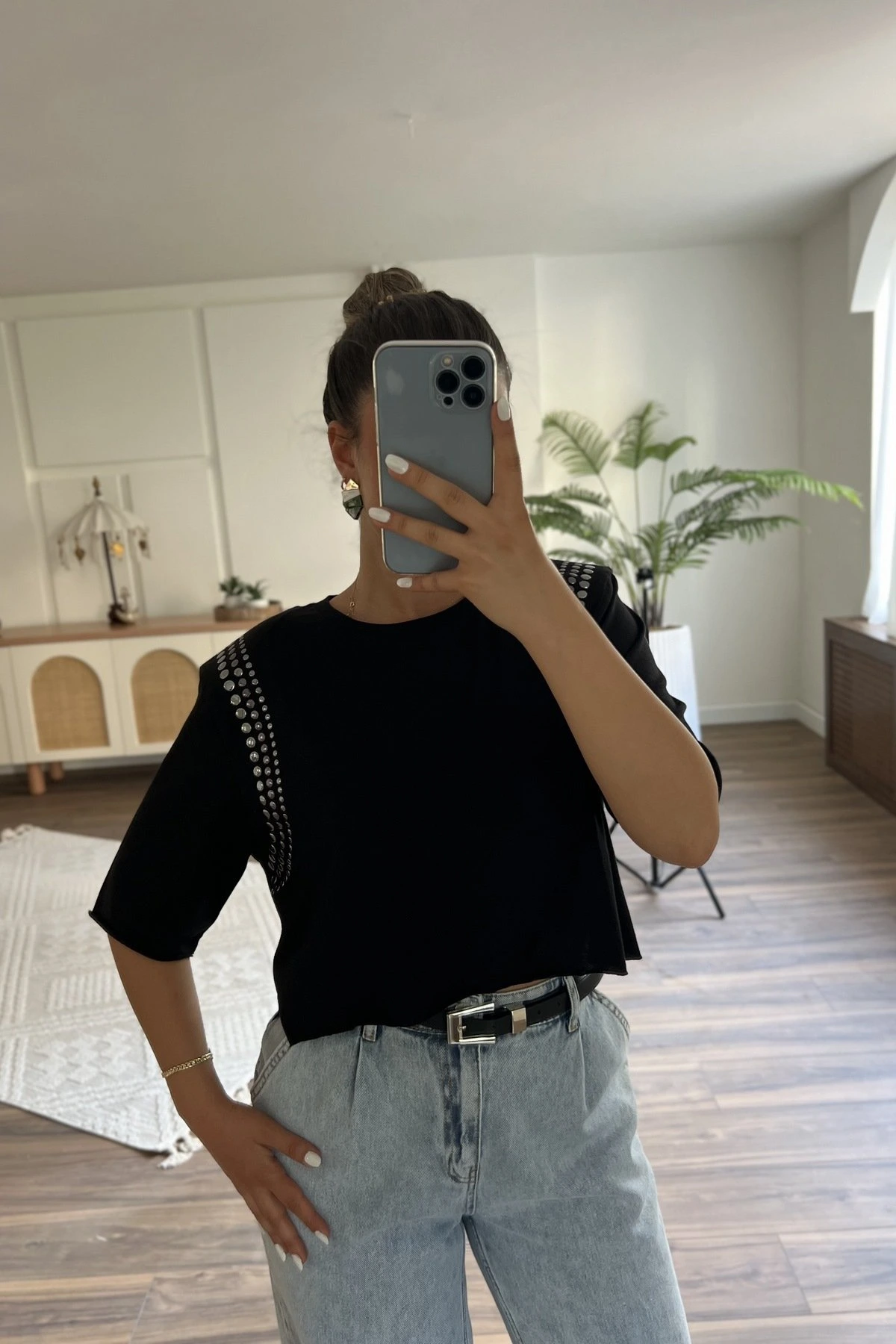 OMUZ ZIMBA VATKALI CROP PAMUK TİŞÖRT – SİYAH