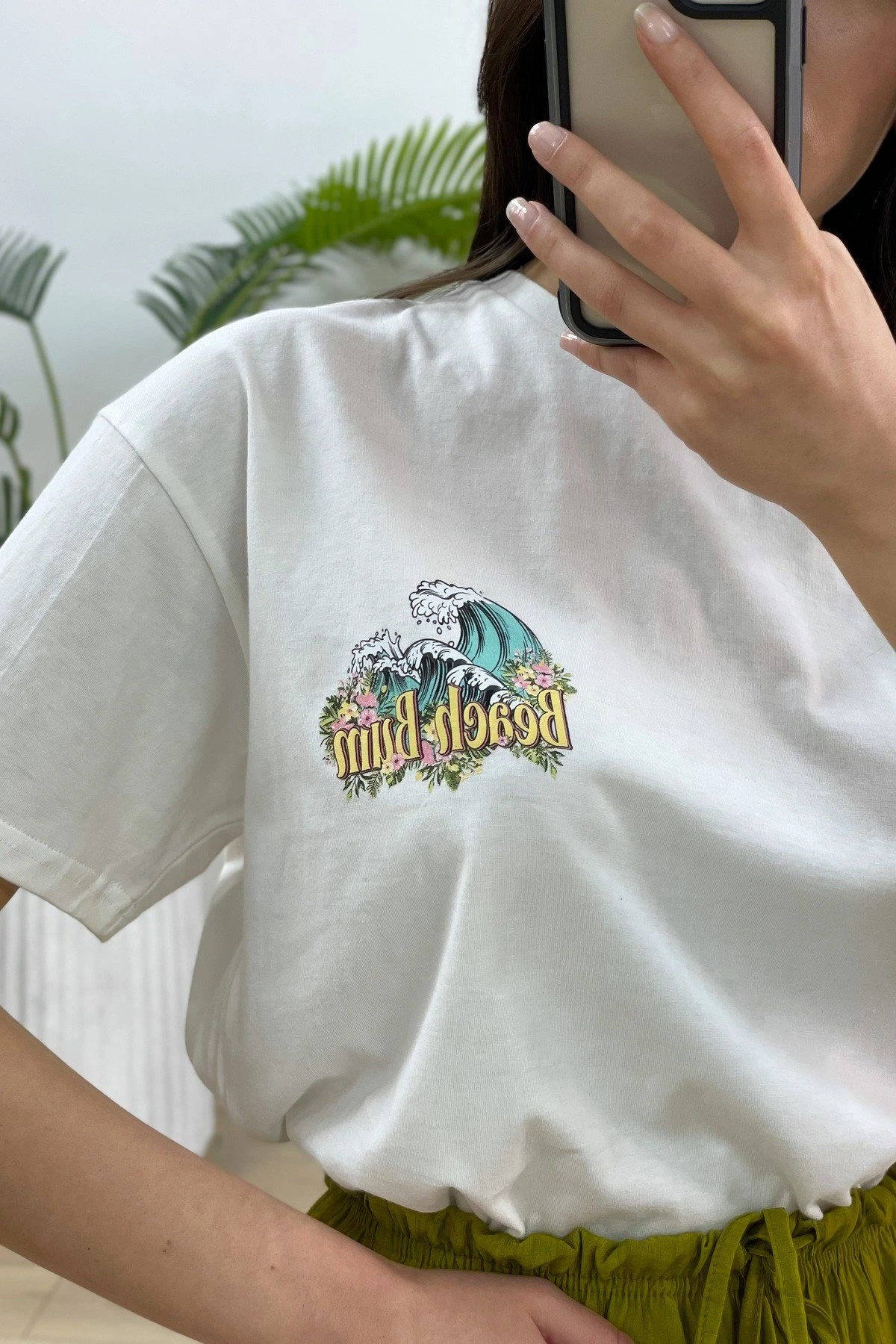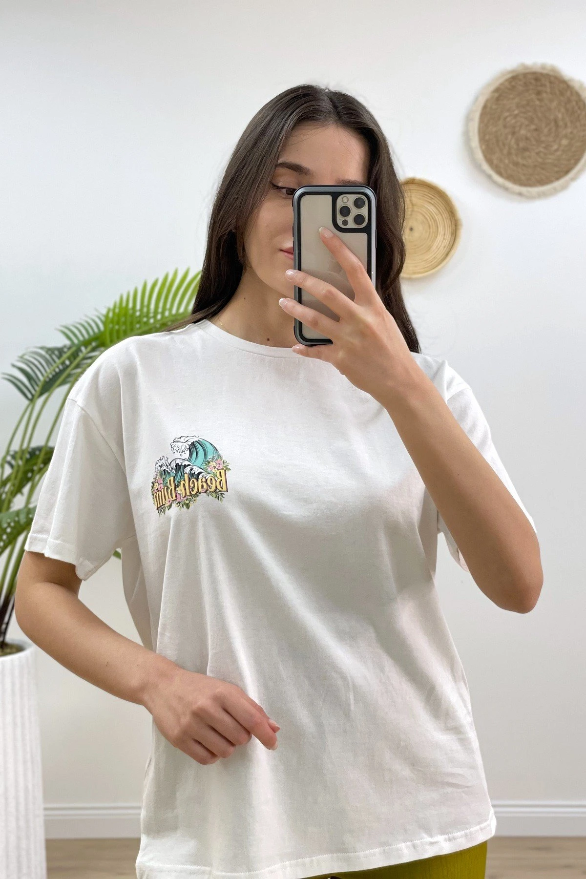 ÖN ARKA TAŞ İŞLEMELİ TİŞÖRT – EKRU