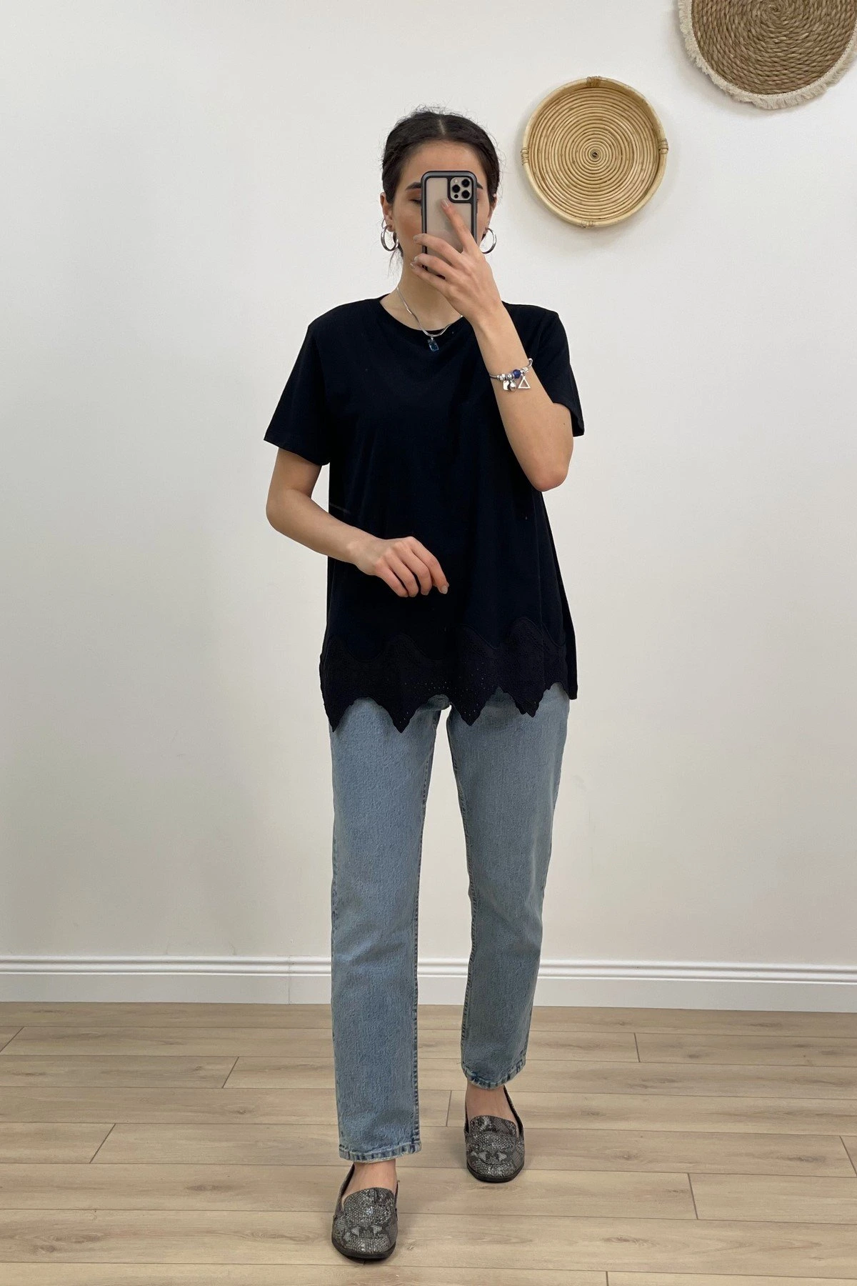 ÖN ETEK UCU FİSTO TİŞÖRT – SİYAH